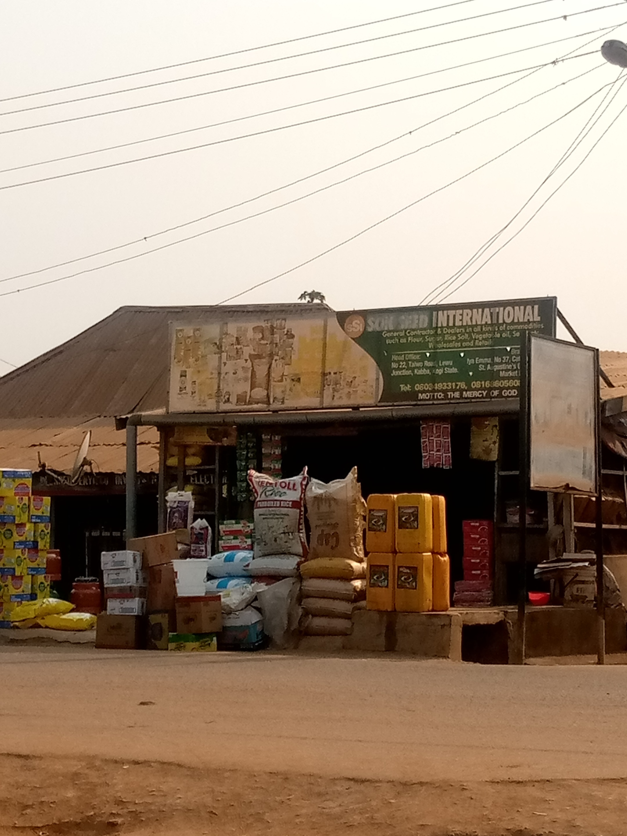 This is a place where they sell bag of rice, gerican of groundnut oil, indomies, salt and other provisions.