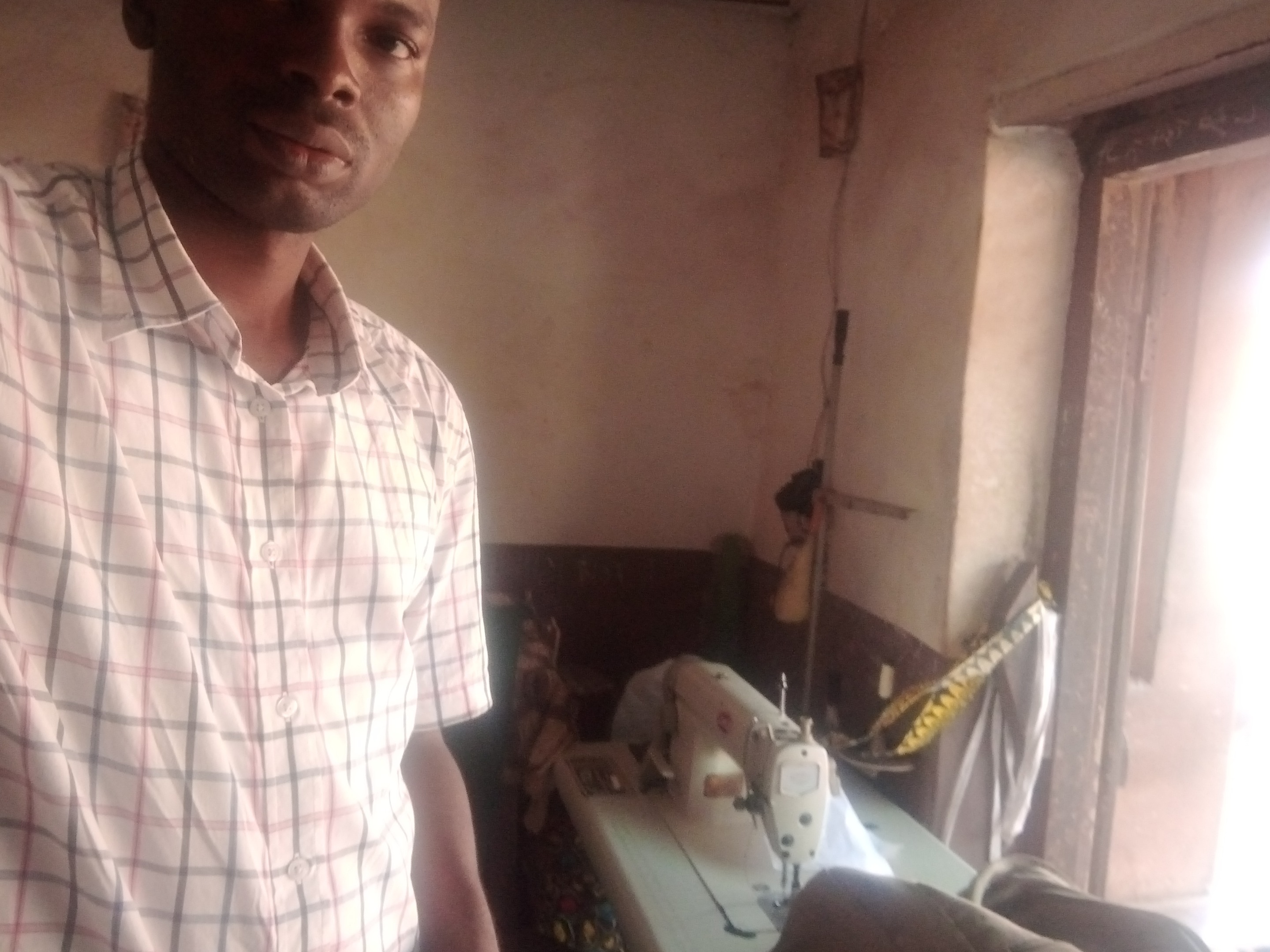 I called the tailor, we actually book an appointment. I waited for him at the spot that we were supposed to meet although he took sometime before he show up but finally he show up and together on his bike we moved to his shop.