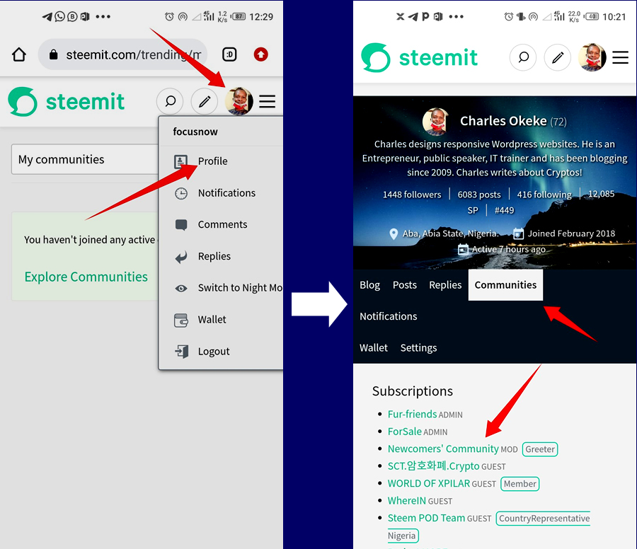I welcome you once again to another wonderful tutorial. Now that you have finished setting up your page and subscribing to some communities, it is time to make your first post, the introduction post. If you have not logged in before to your page, check the first 3 steps of the tutorial below: