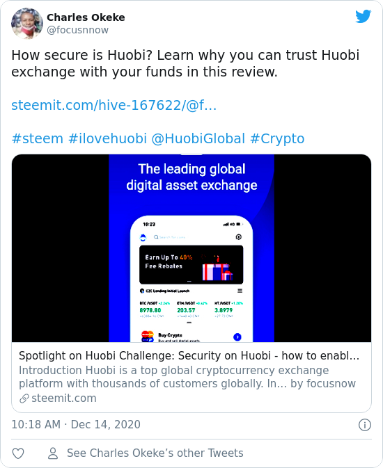 Huobi has proven beyond doubts that it belongs to the top of global exchange platforms with the above security features. This is not an exhaustive review of the feature. There are still other security features which I will spotlight in the next review am getting ready.