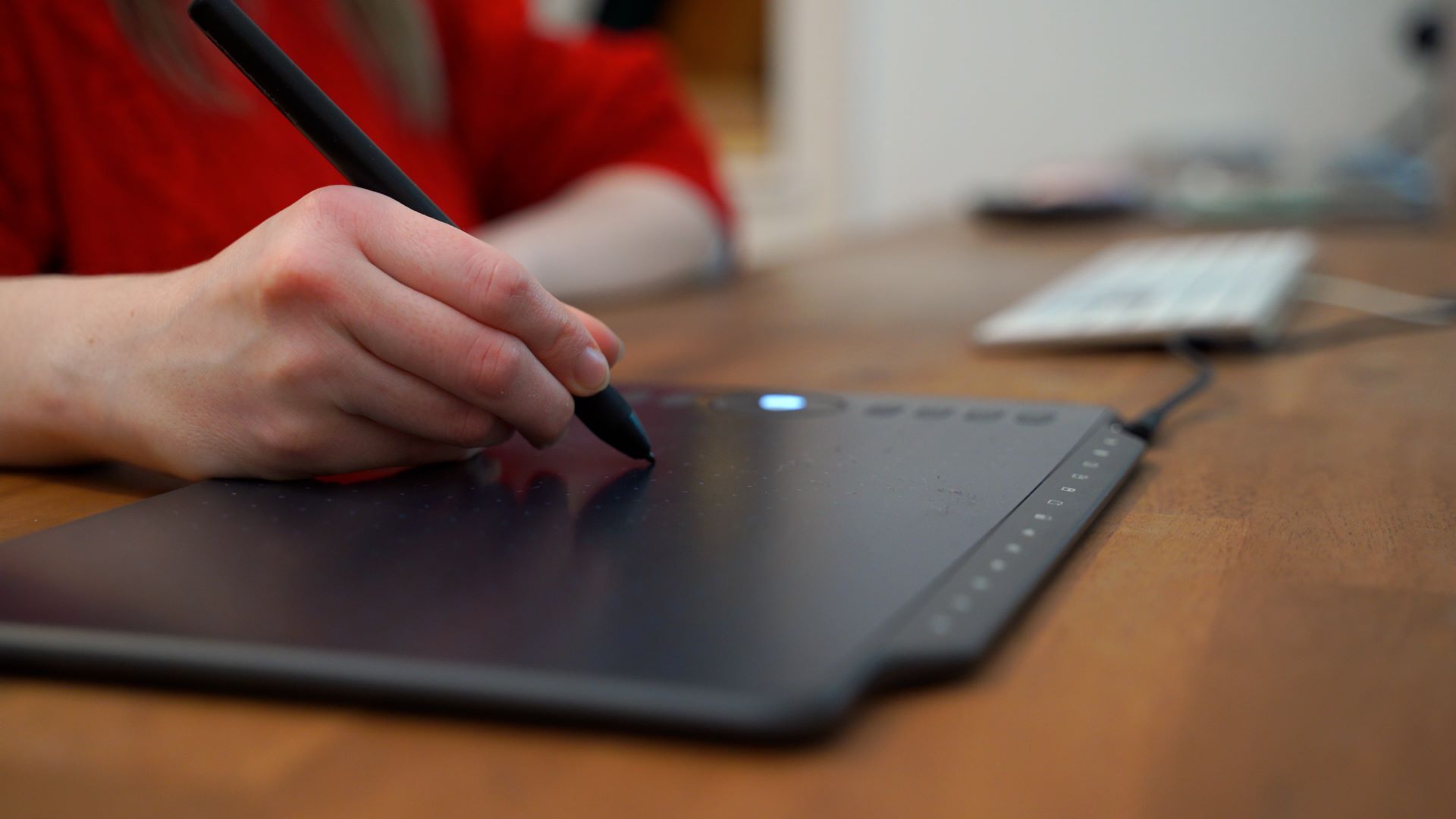 I am not that much of an artist; I mostly use graphics tablets for video editing and video animation. Luckily, my girlfriend is a graphics designer and actually draws very well. So I will show you some impressions of her using it: