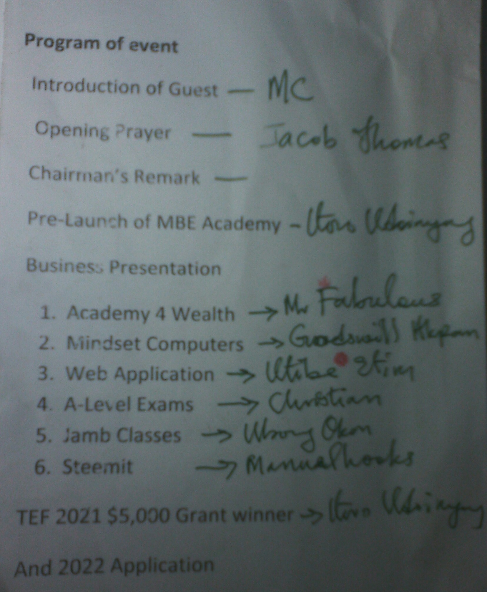 After introducing and unavailing the MBE banner, Mr Itoro explained the concept behind MBE. MBE is a skill acquisition program organized by Mindset in partnership with its registered partners across the state. While Mindset will take care of the business and entrepreneurship development, the associated partners will be responsible for transferring the specific skill selected by the student.