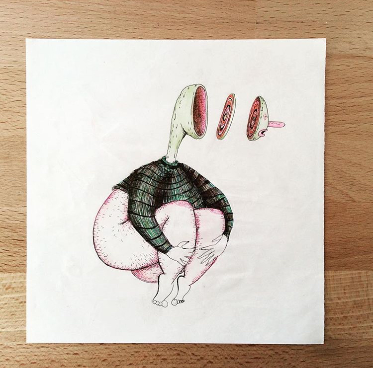 “Open Head #2*annicont (49)in #steemartist • 8 years ago Mixed Media artwork Ink and colored pencil! Thanks for watching! #art #sketchbook #character #mixedmedia