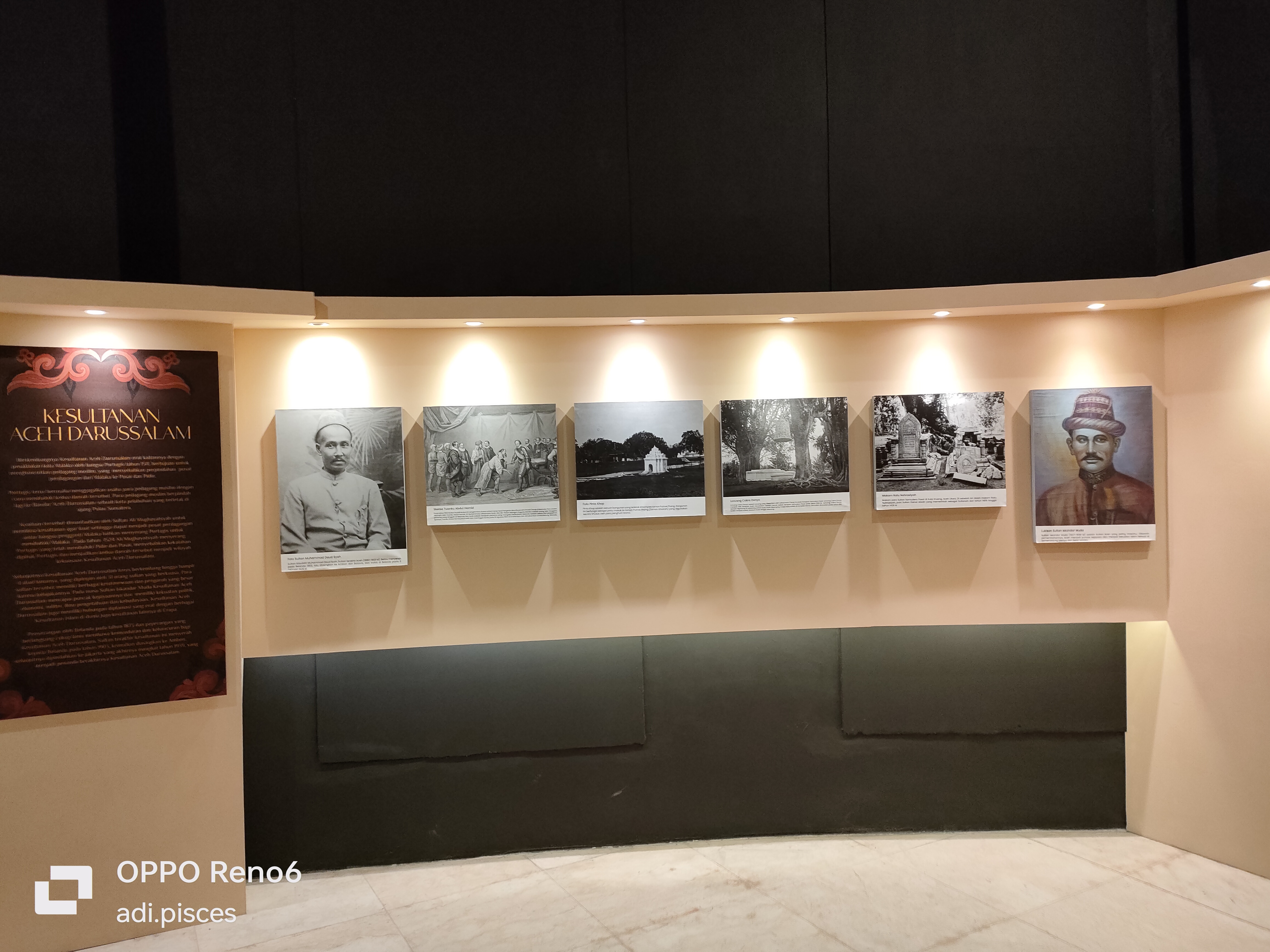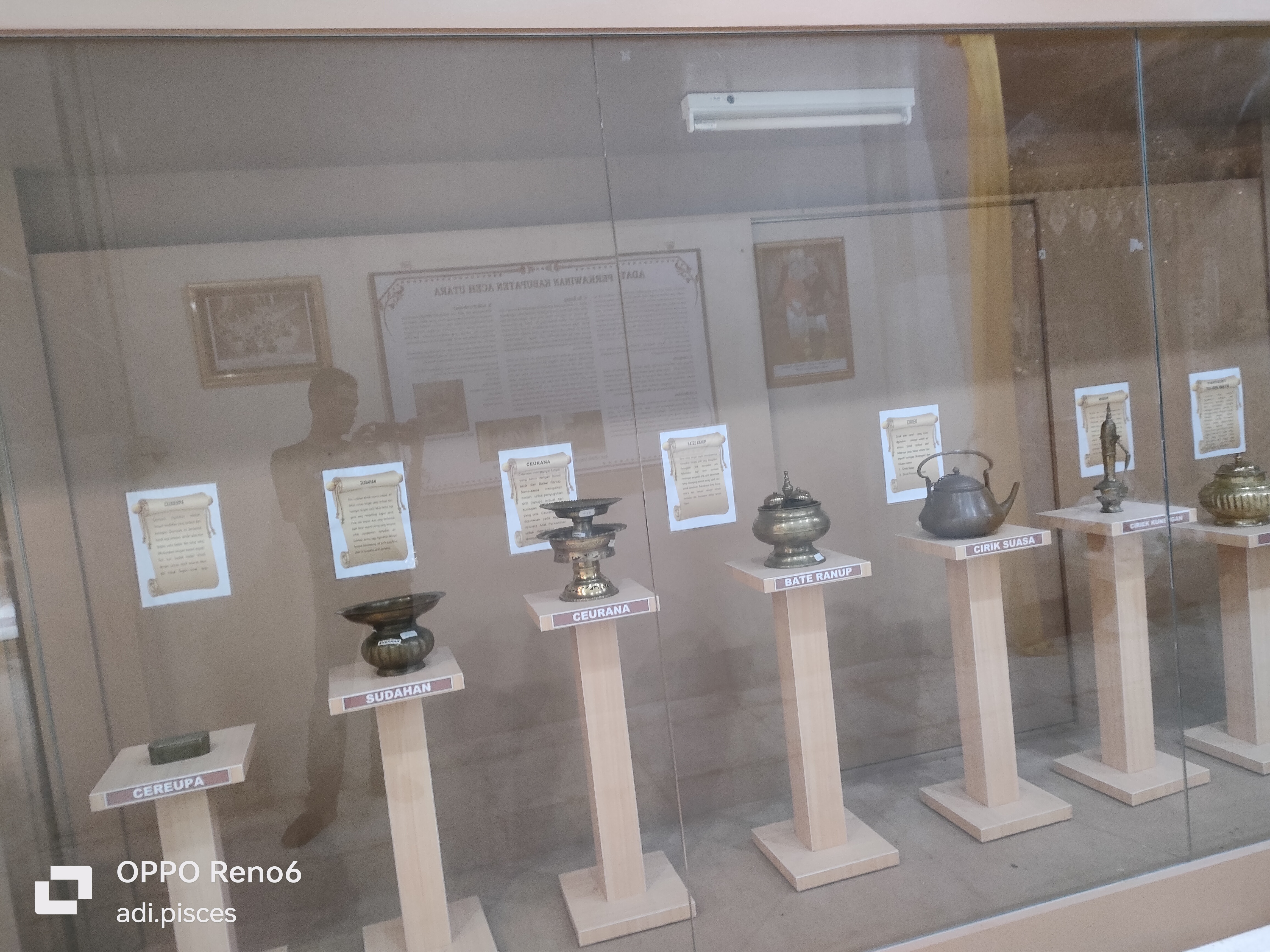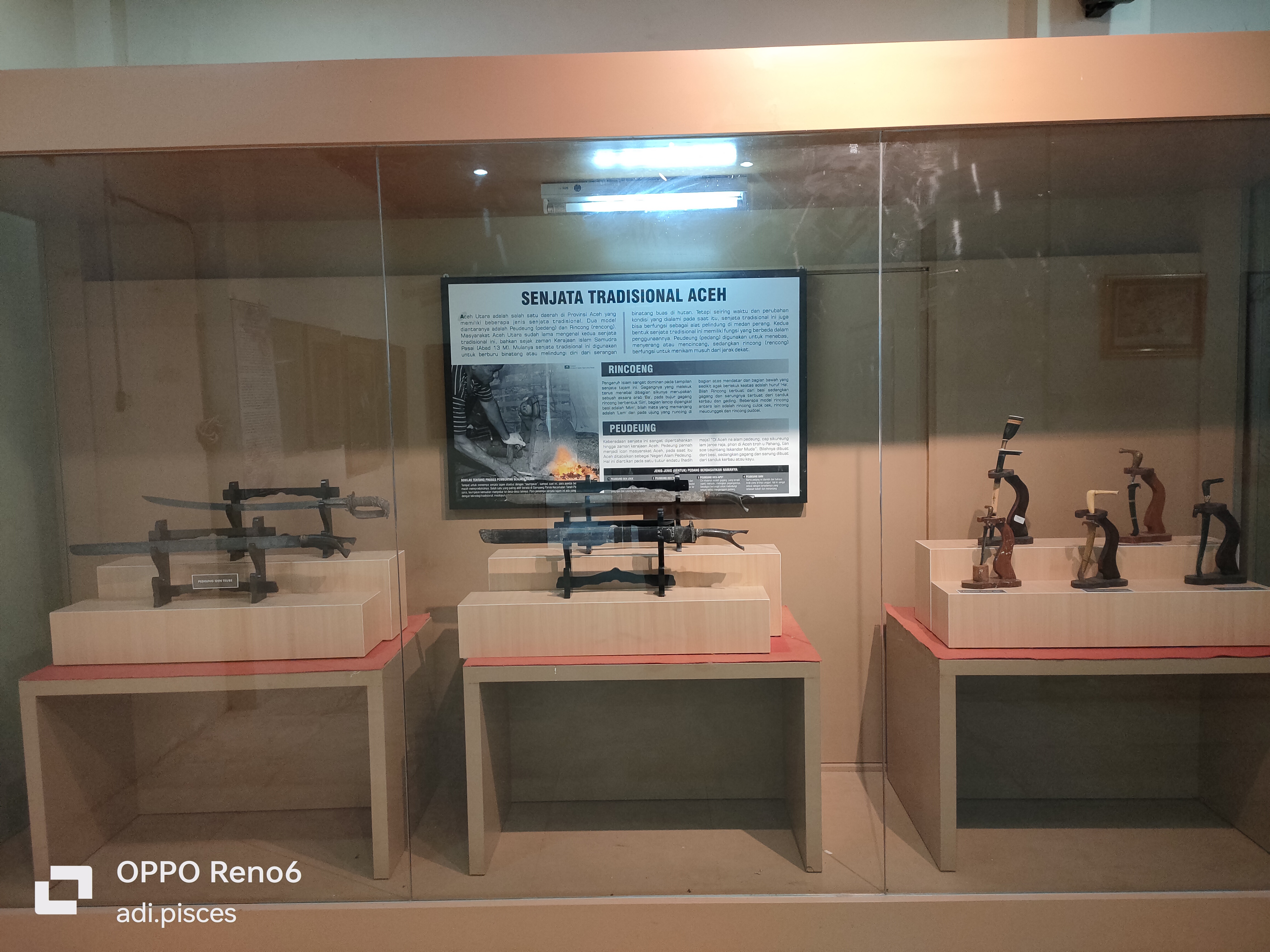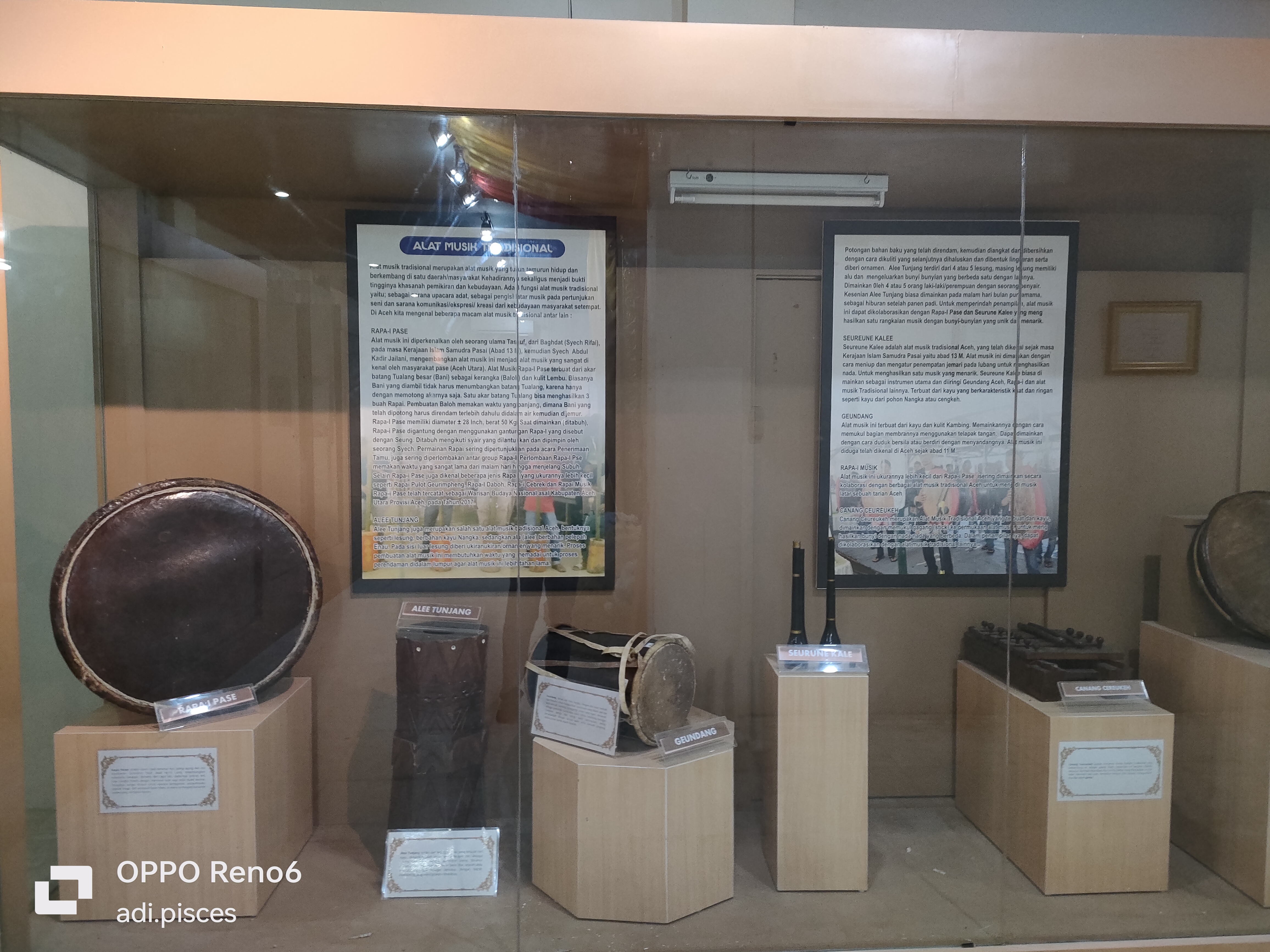 Selanjutnya saya melihat berbagai jenis kita peninggalan sejarah, salah satunya seperti kitab siratul Mustaqin dan masih banyak lainnya yang terpajang dalam kaca, bukan hanya itu saya, berbagai jenis alat musik tradisional, seperti gendang, seureune kalee, rapa-i dan berbagai keramik cina, seperti mangkong, pingan tapak gajah, ceurahi dan masih banyak lagi yang tertata rapi dalam kaca.