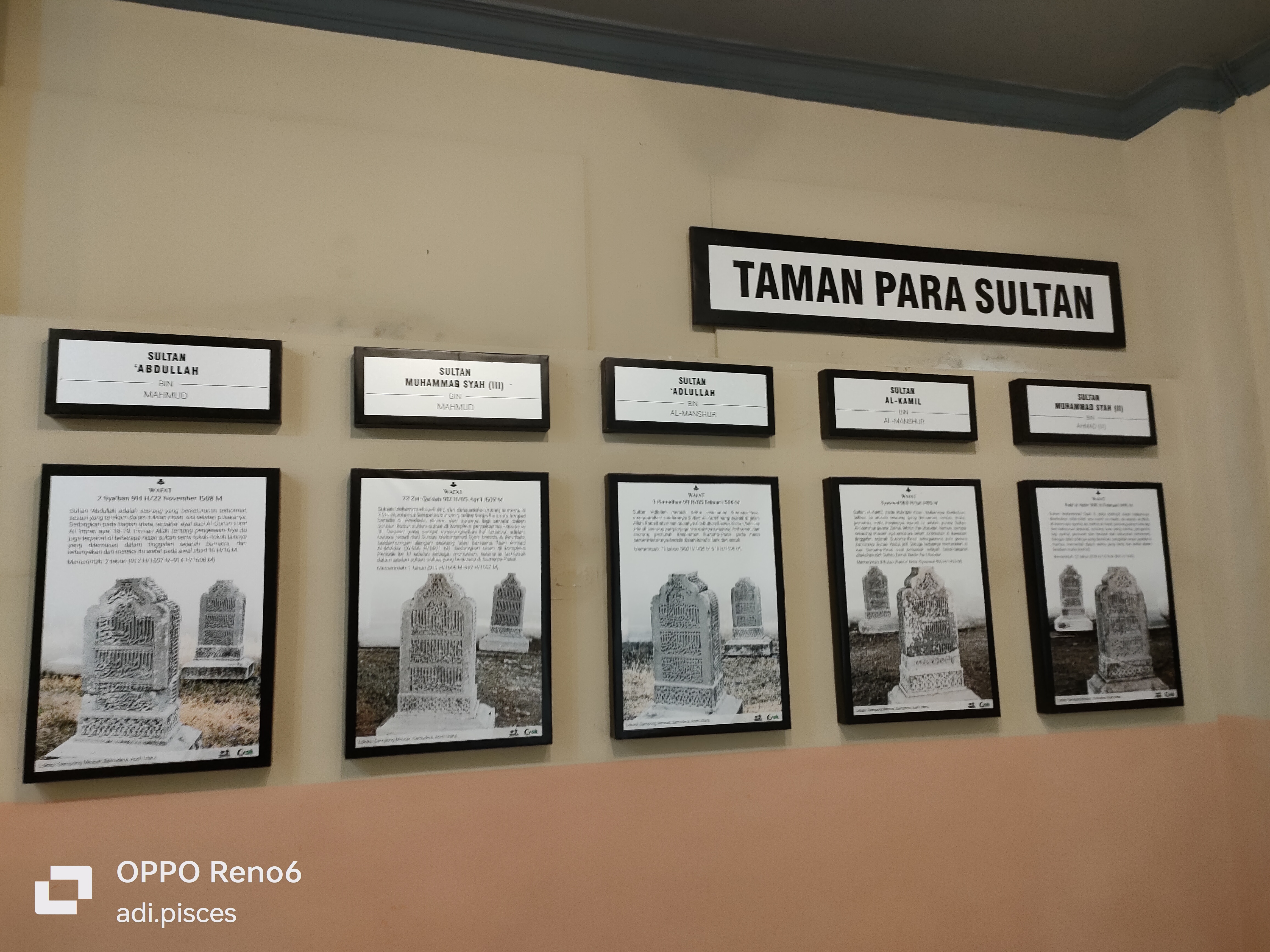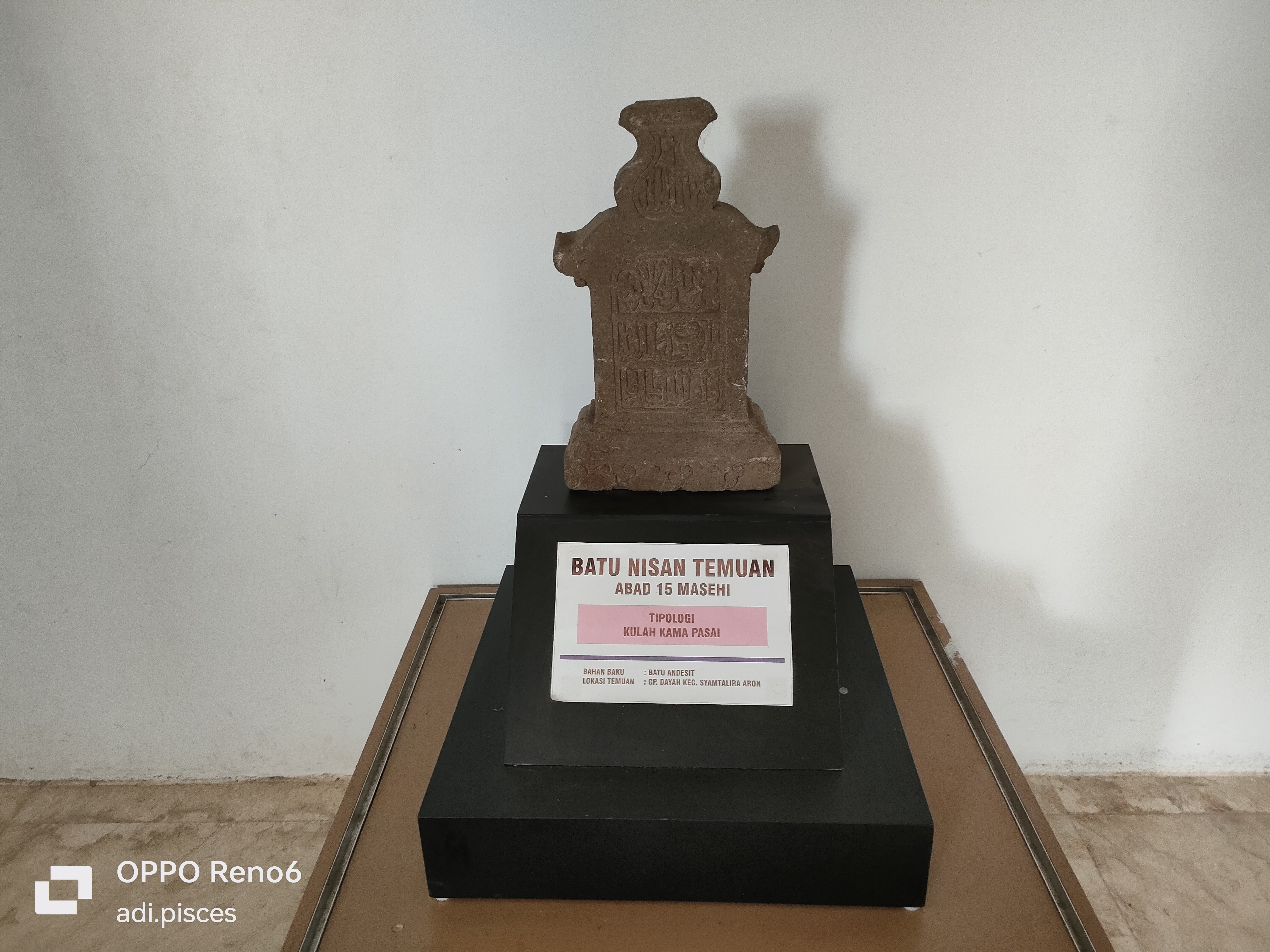 Setelah mendapat izin, saya langsung melanjutkan melihat-lihat koleksi peninggalan sejarah, yang pertama sekali beberapa batu nisan temuan berbagai abad, namun saya hanya memotret Batu nisan temuan abad 15 MASEHI dan didinding terdapat berbagai macam jenis gambar batu nisan dengan sejarahnya