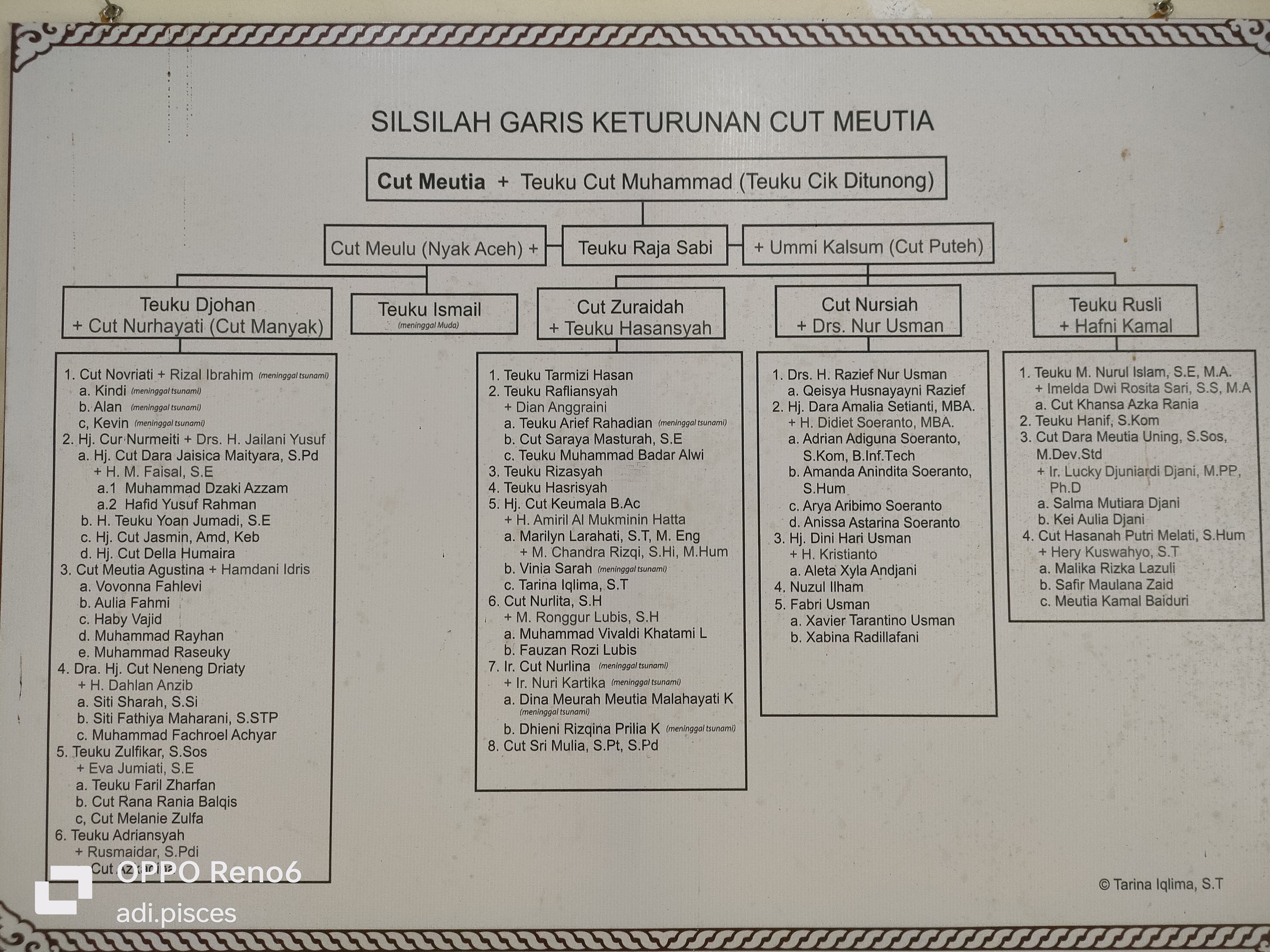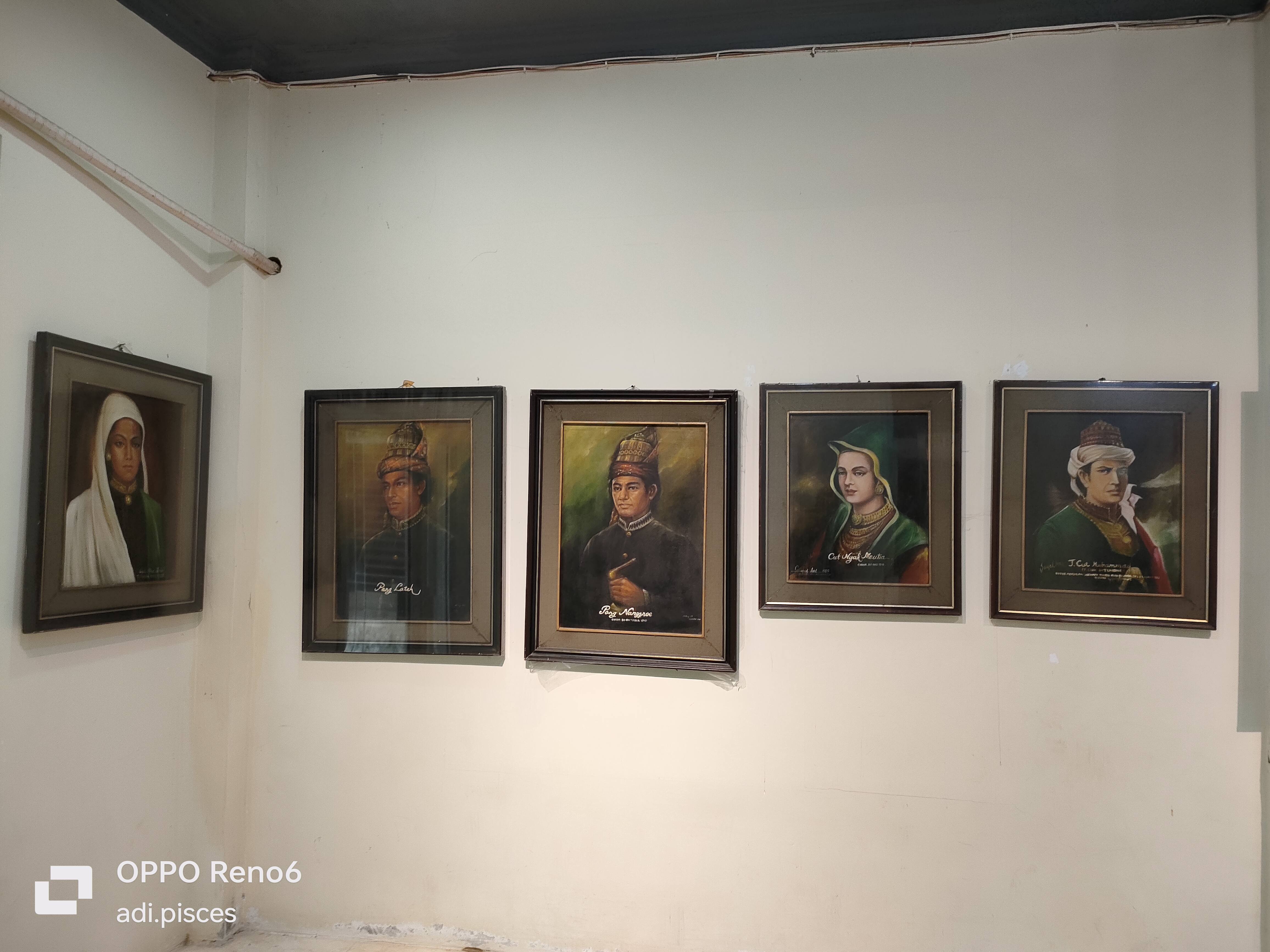 Selanjutnya saya melihat pajangan silsilah dari garis keturunan cut Mutia yang penuh sejarah perjuangannya dan beberapa gambar dari pejuang-pejuang Aceh terdahulu terpajang rapi di sana, di samping itu juga terdapat berbagai jenis senjata tradisional Aceh seperti rincoeng, peudeung yang masih menjadi kebanggaan kita bersama