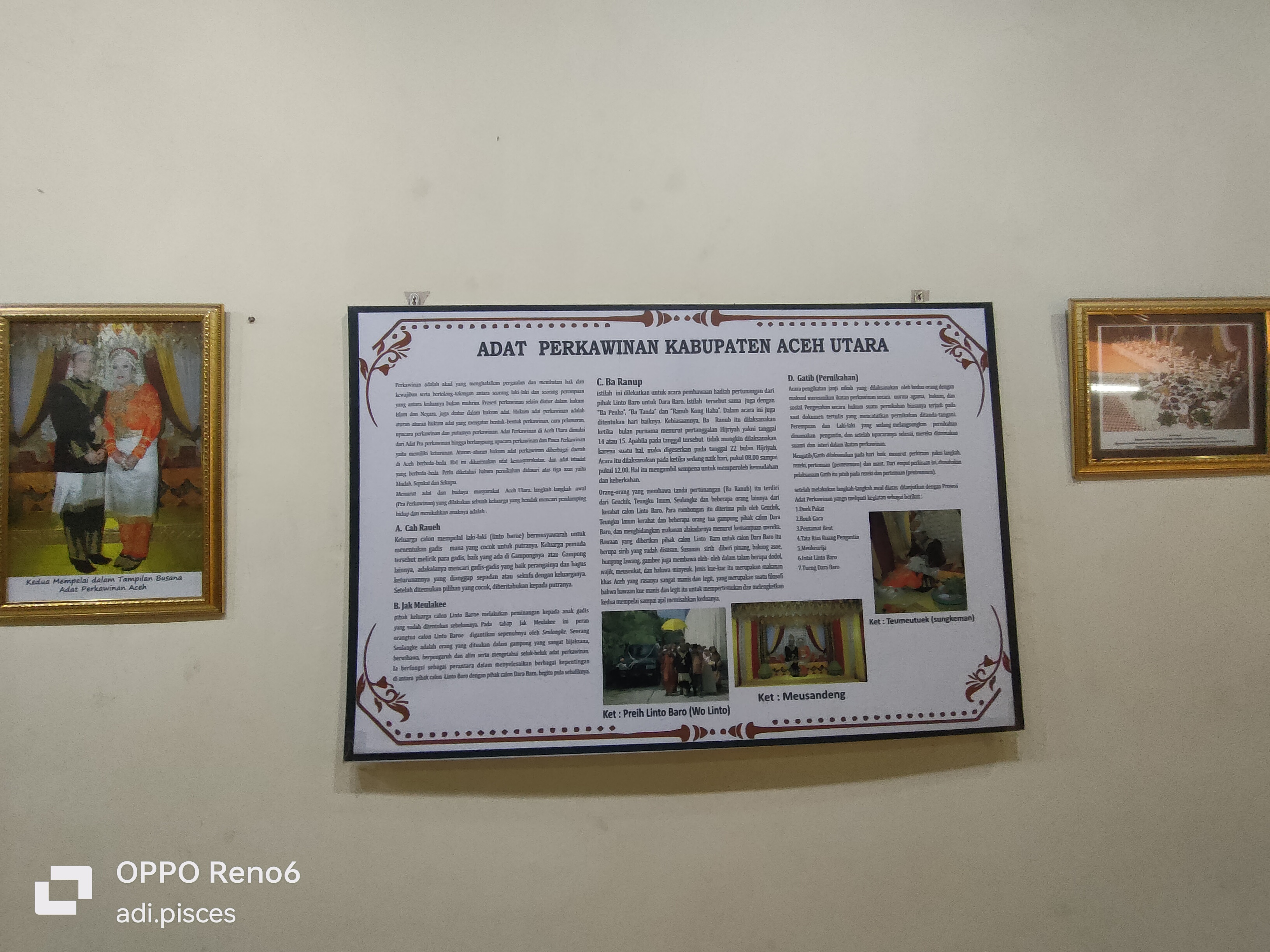 Selanjutnya saya menuju ke area Replika pelaminan dan masih menjadi tradisi bagi kita semua orang Aceh tentunya disaat adanya pesta perkawinan dan di sampingnya terdapat pajangan tata cara perkawinan atau adat perkawinan kabupaten Aceh Utara