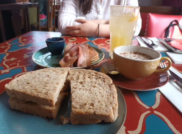 I had a vegan sausage butty (or sandwich) for £5.75, or around 60 Steem. I also had a decaff latte with oat milk for £3.80, or around 40 Steem. I enjoyed my lunch because I was with my friend who’d just been for an interview so it was a bit of a stressful day for her. The food was okay but as it was a bit hot the bread felt slightly dry for my liking. I appreciate the effort of offering a vegan item on the menu though. I’d definitely visit that cafe again but I might just take a small butter with me to add to my sandwich.
