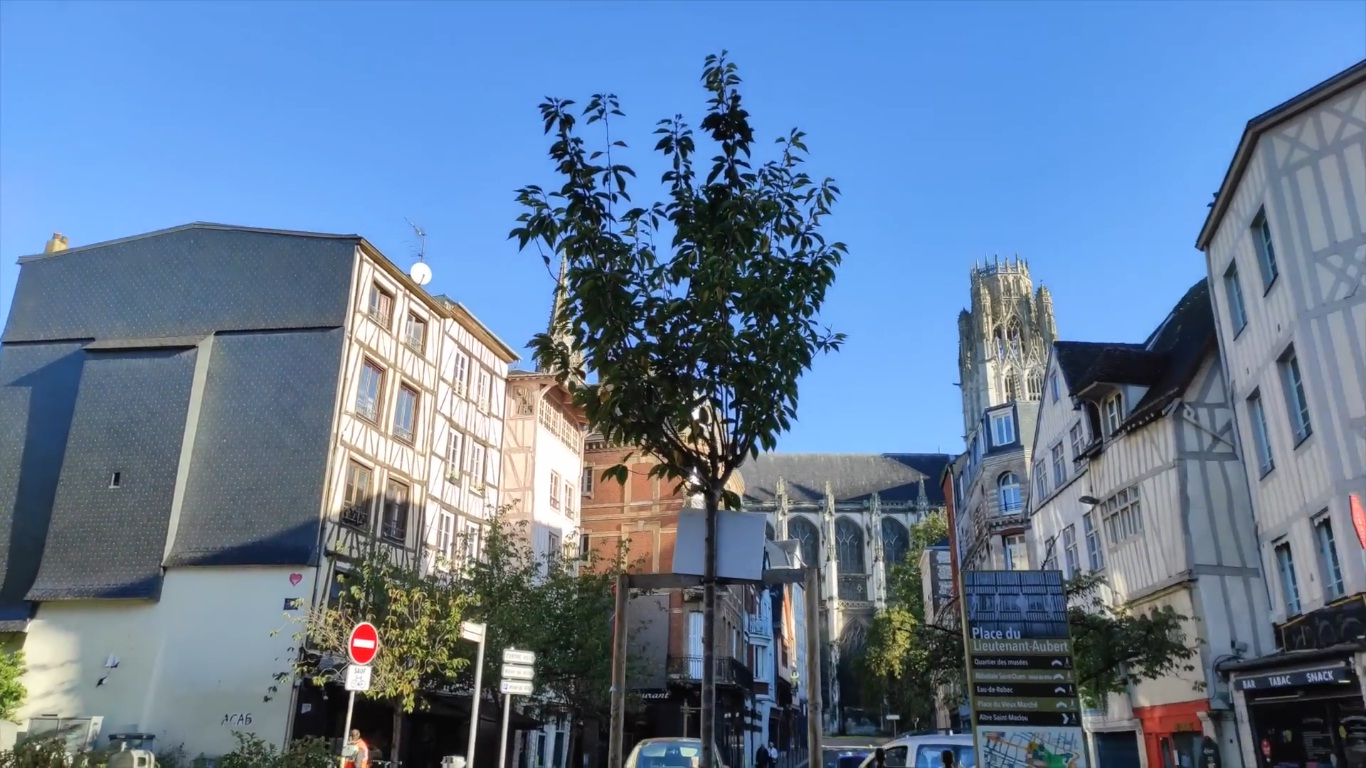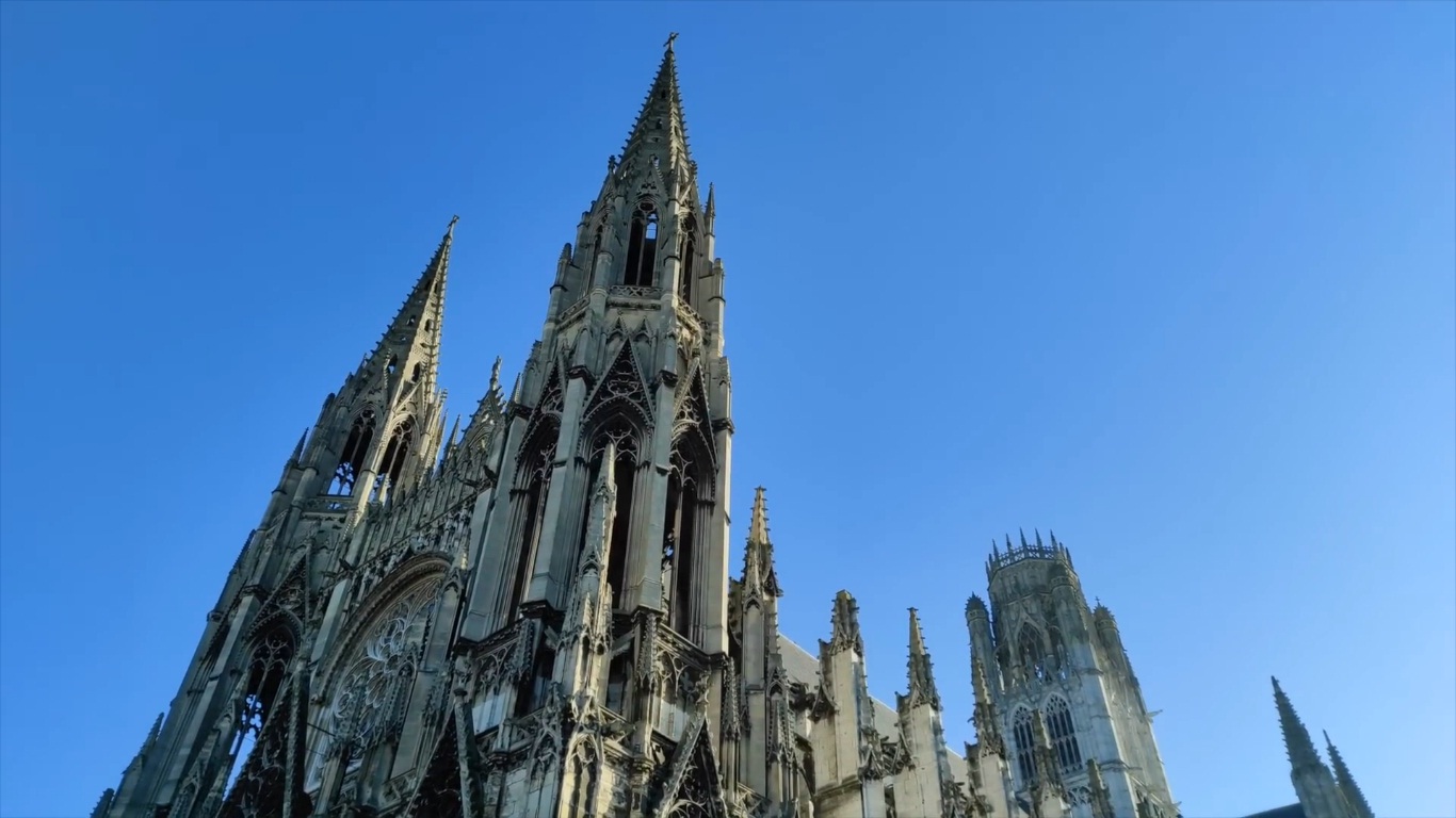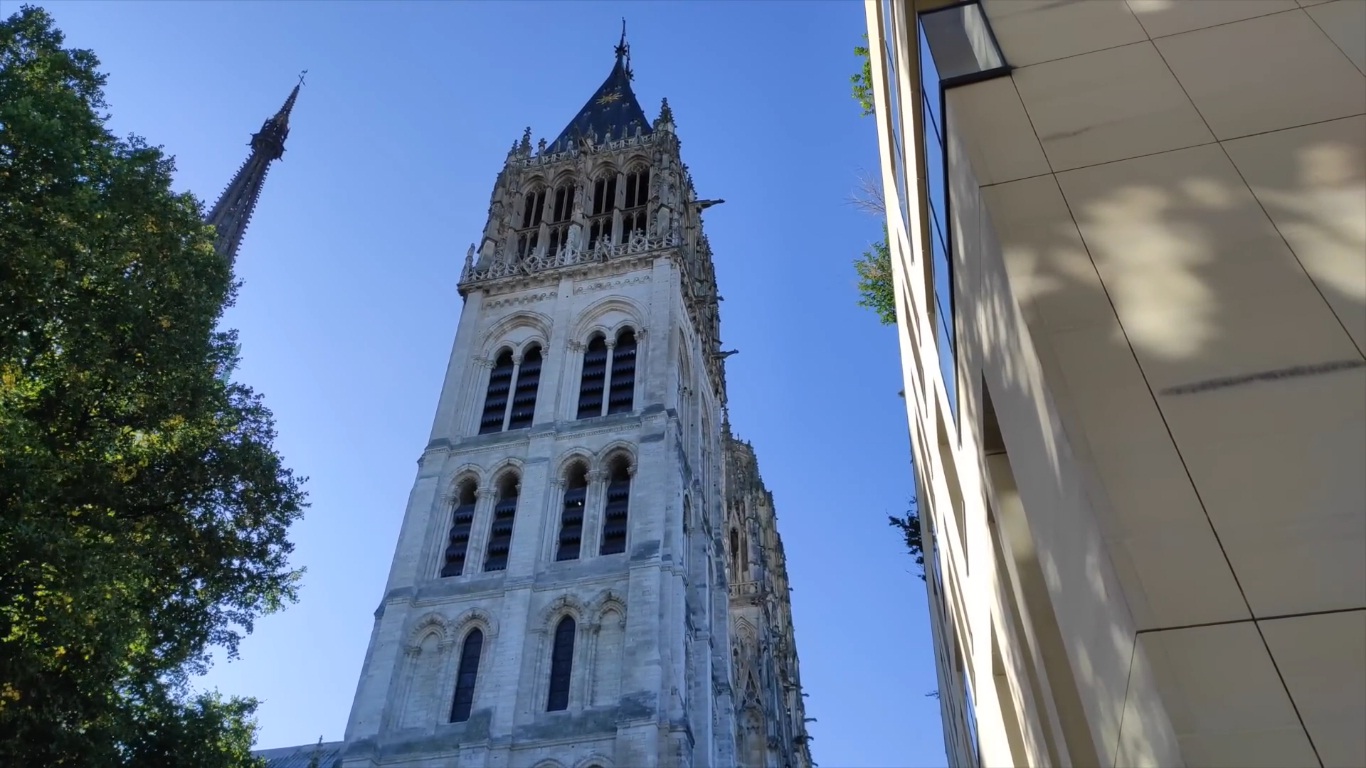 aquí comienza nuestra historia y recorrido por Ruan bañando sus calles empedradas en un precioso tono de oro medieval y de colores oscuros y blancos conjugados todos hacen vivir un cuento de hadas,. Me dirijo hacia la Catedral de Nuestra Señora de Ruán, una joya gótica que se eleva majestuosamente en el corazón de la ciudad en donde se encuentran historias de los emperadores ingleses . Sus torres y arbotantes me recuerdan la riqueza y la elegancia de la Edad Media.que se pueden ver y apreciar desde distintas partes de la ciudad una gran aventura es entrar y ver sus vitrales y columnas y el arte por donde uno camine se encuentra una historia diferente .