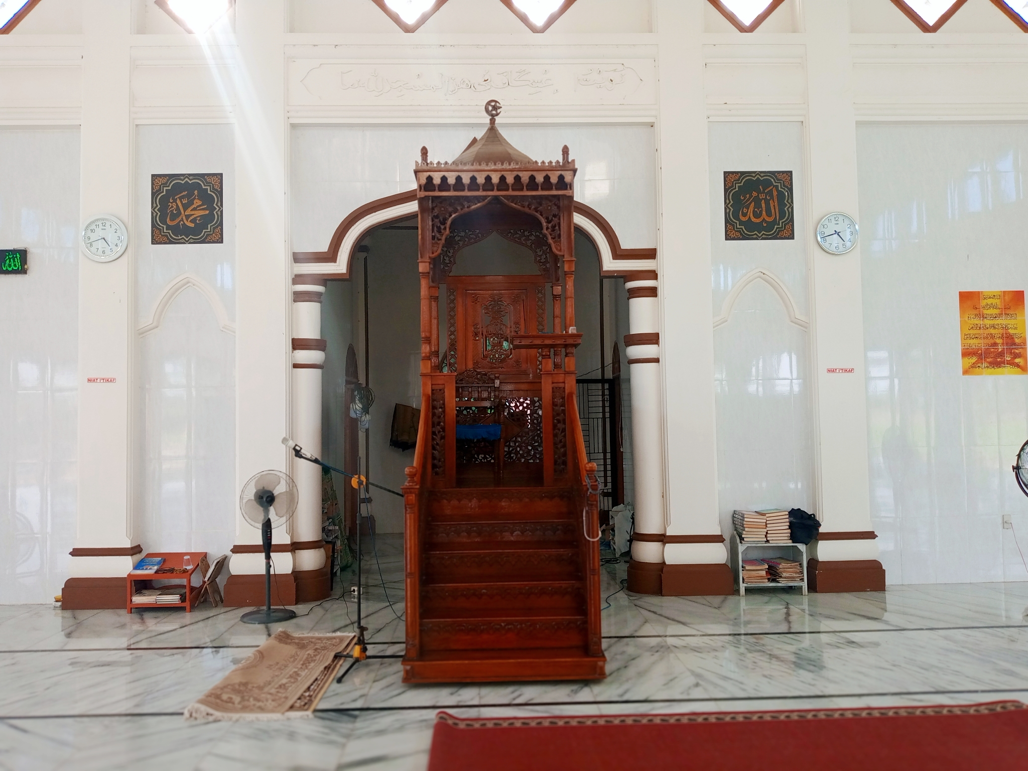 All mosques have a pulpit, including the Madinatul Abrar Mosque. A pulpit is located at the front, right next to the position of the imam himself. The mosque pulpit is often used on Fridays after the Friday Sunnah prayer because its main function is as a place for the preacher to deliver the Friday prayer sermon. The pulpit is also often used as a means of preaching to deliver lectures or Islamic studies and lead prayers after the sermon.