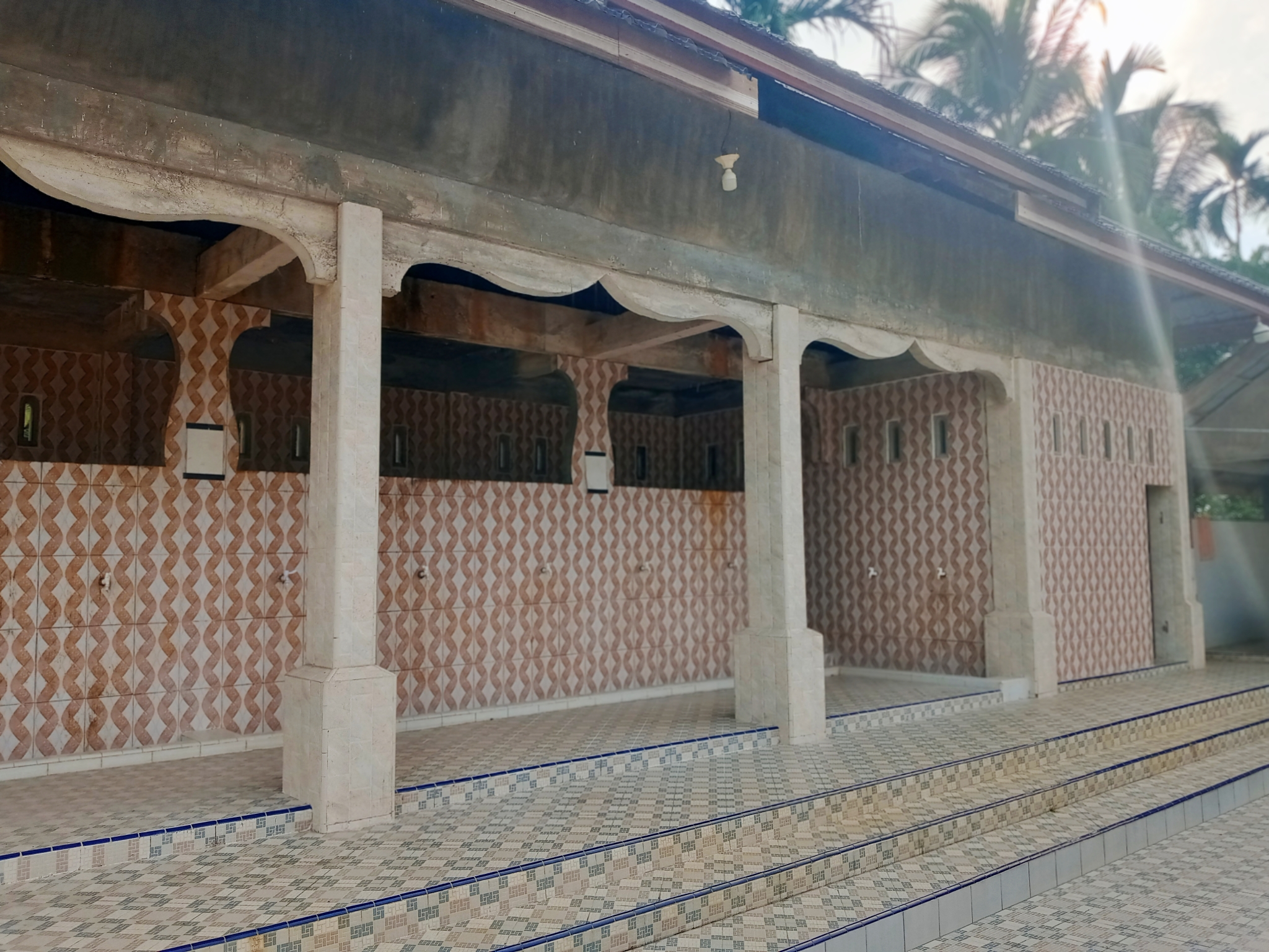 The vehicle parking area itself is not very big, but when there are too many congregants, they can park their vehicles in front of the mosque.
