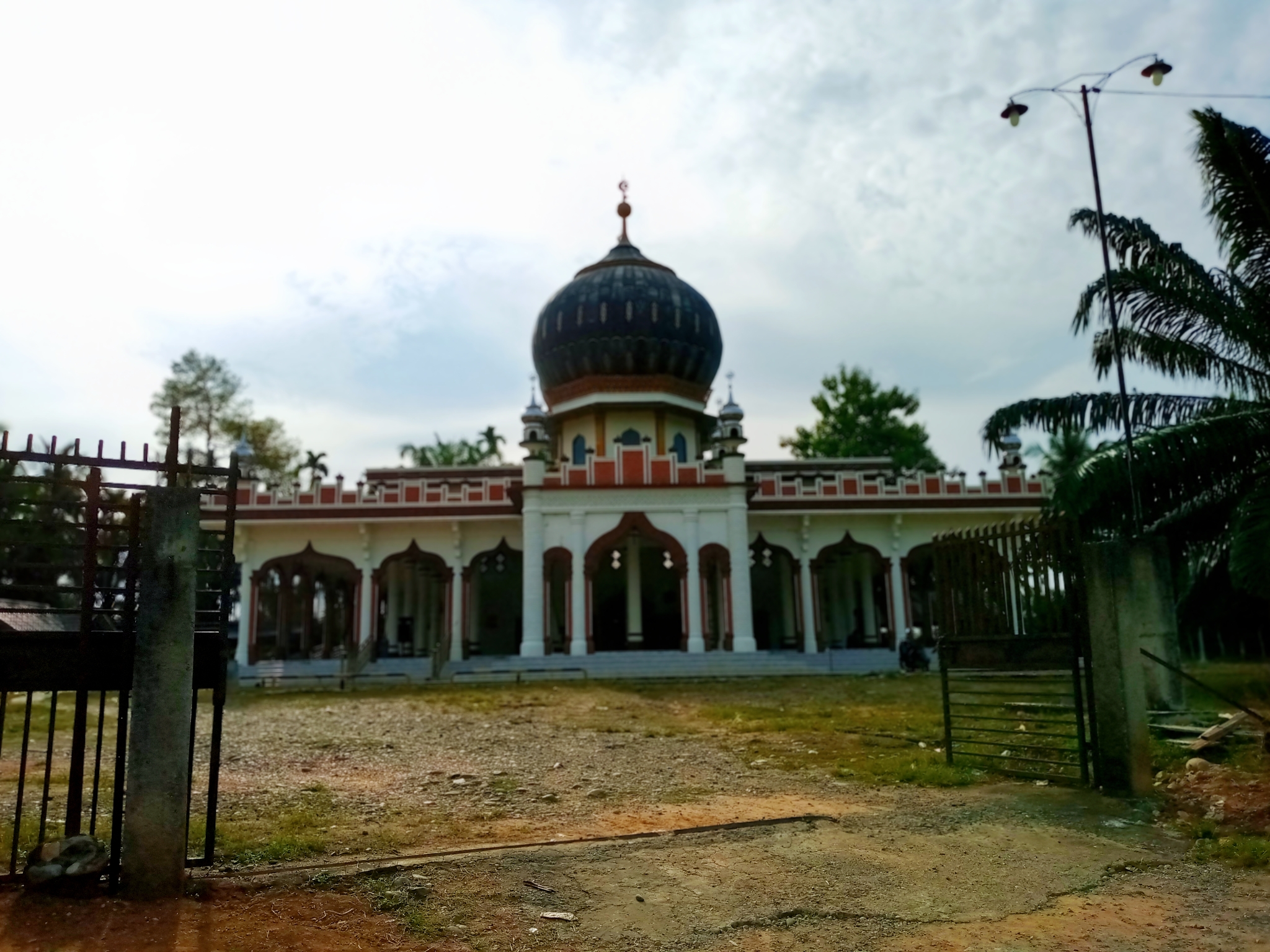 The Madinatul Abrar Mosque is clearly visible from the side, with another dome visible. In fact, the Madinatul Abrar Mosque has two black domes neatly lined up, leaving only one visible from the front.
