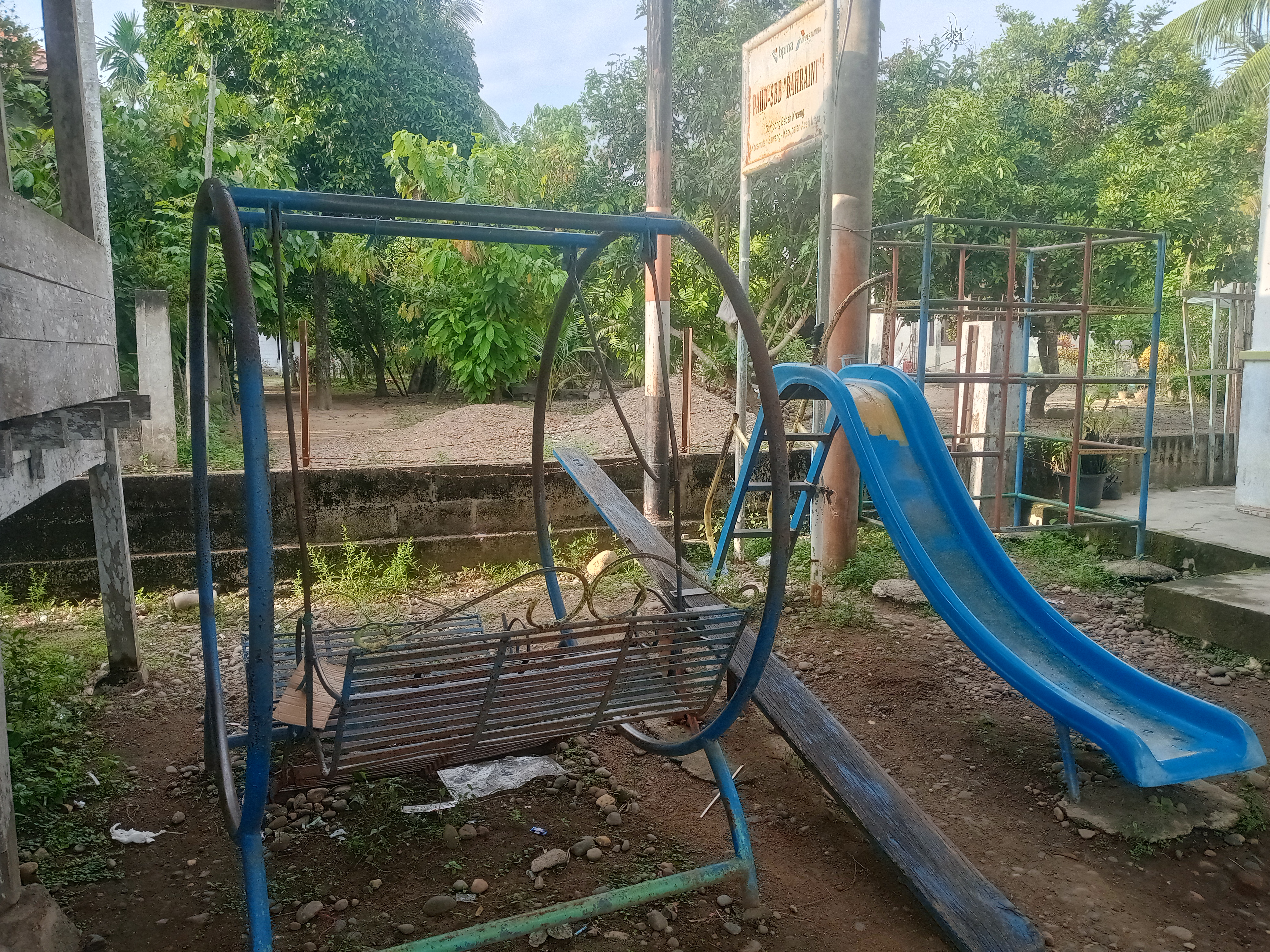 Pada bagian luar tersedia ayunan dan juga perosotan untuk anak-anak bermain pada saat jam istirahat, sekarang hanya dua ini saja yang ada di tempat sekolah Paud sbb bahraini tersebut dan kami harapkan pemerintah lebih memperhatikan kekurangan tersebut pada salah satu tempat pendidikan anak seperti di PAUD -SBB BAHRAINI tersebut.