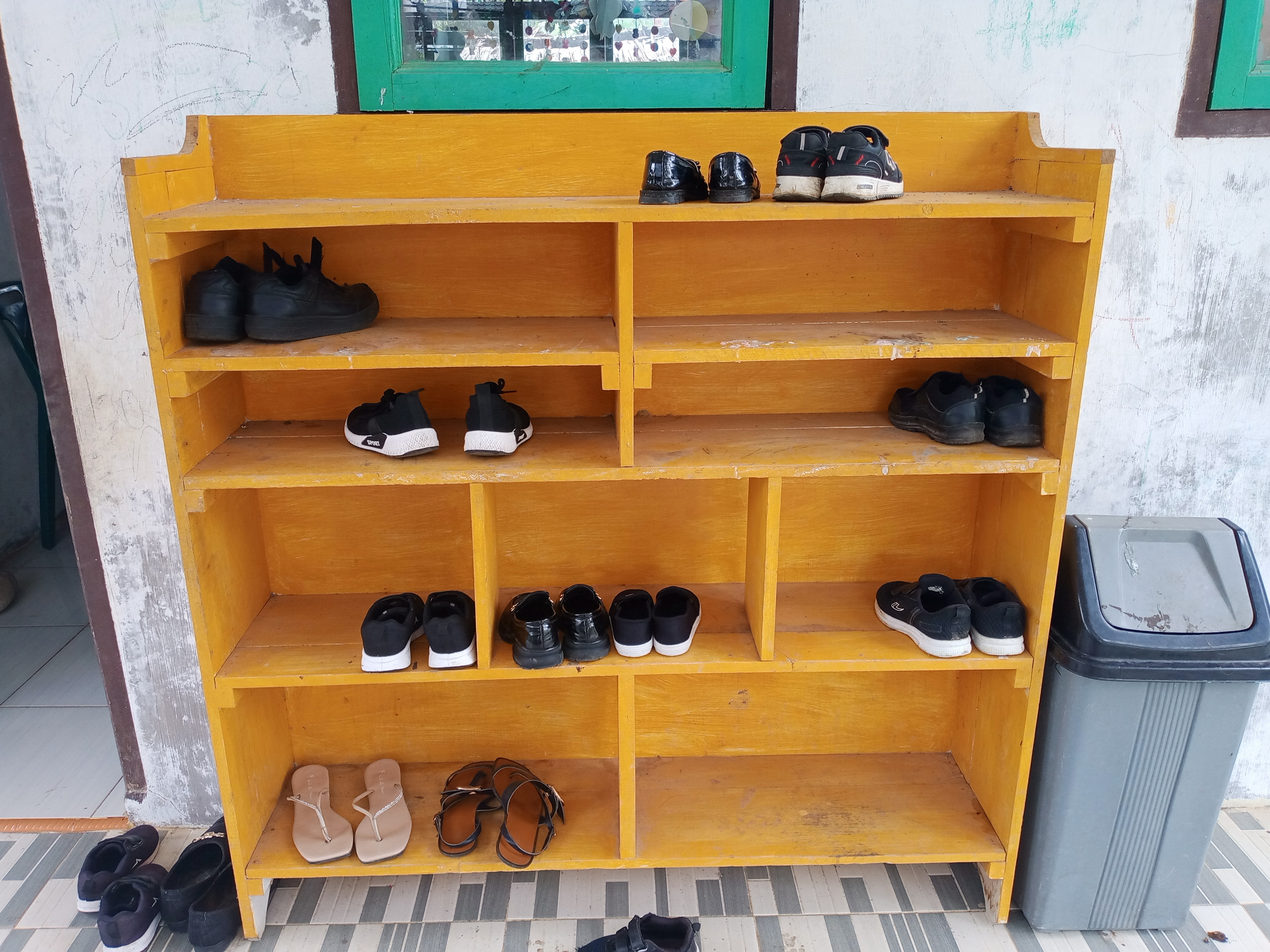 Pada bagian luar ruangan terdapat rak sepatu bagi anak-anak untuk mendidik kedisplinan mereka pada usia dini, mendidik anak-anak pada masa dini sangat diperlukan mulai dengan hal kecil seperti kedisiplinan ini.