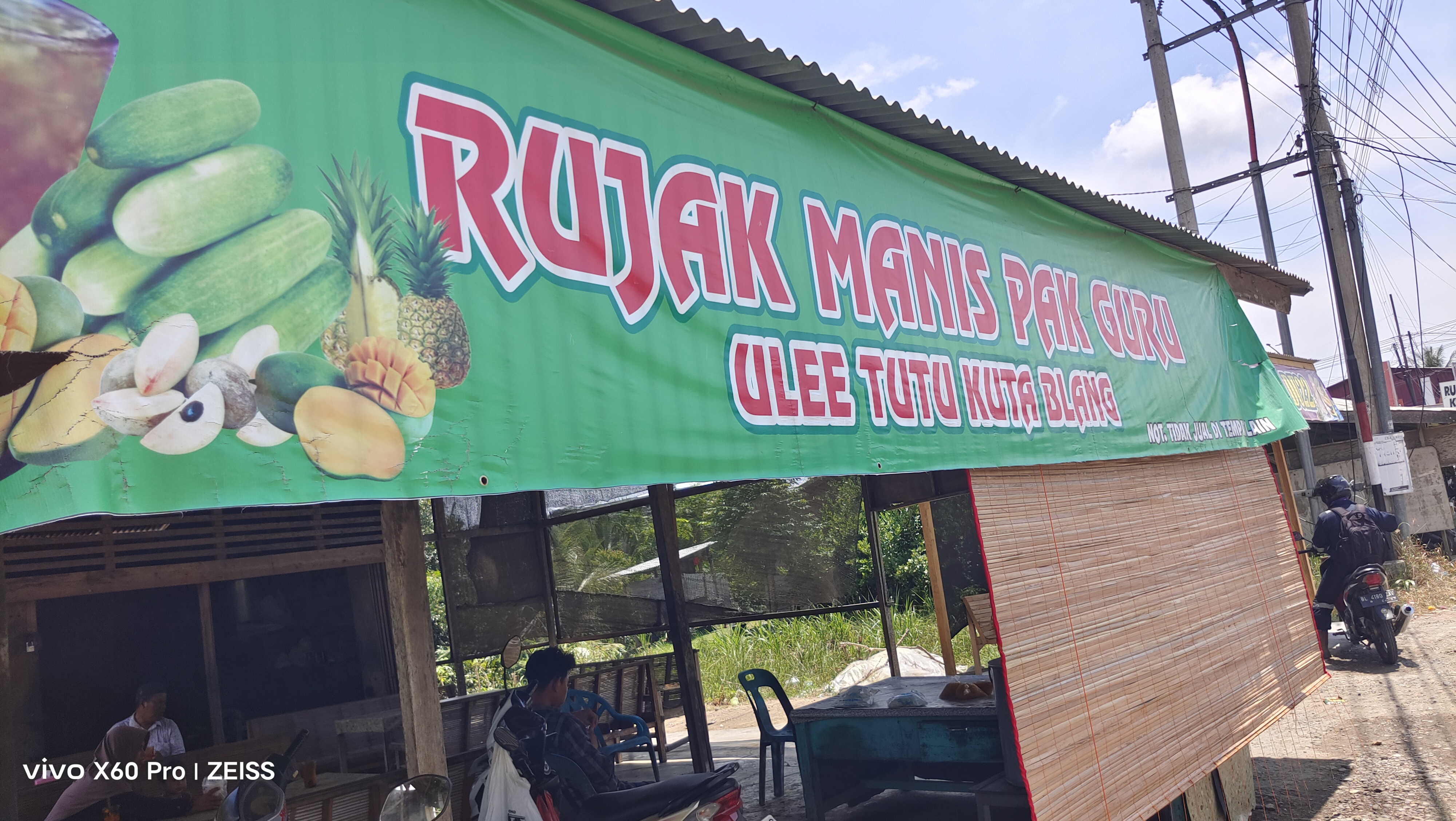 Adapun tujuan saya singgah di tempat ini yaitu ingin membeli rujak manis yang memang menjadi salahsatu makanan yang sering saya beli ketika melewati kota yang terkenal dengan salahsatu tempat yang mempunyai sungai yang dimanfaatkan airnya sebagai air minum oleh perusahaan yang berasal dari kabupaten Aceh Utara dan Lhokseumawe ini. Karena rasa rujaknyayang sangat sehingga disukai oleh segala kalangan maupun usia. Intinya karena rasa yang ditawarkan oleh rujak ini yang membuat rujak ini sangat disukai.