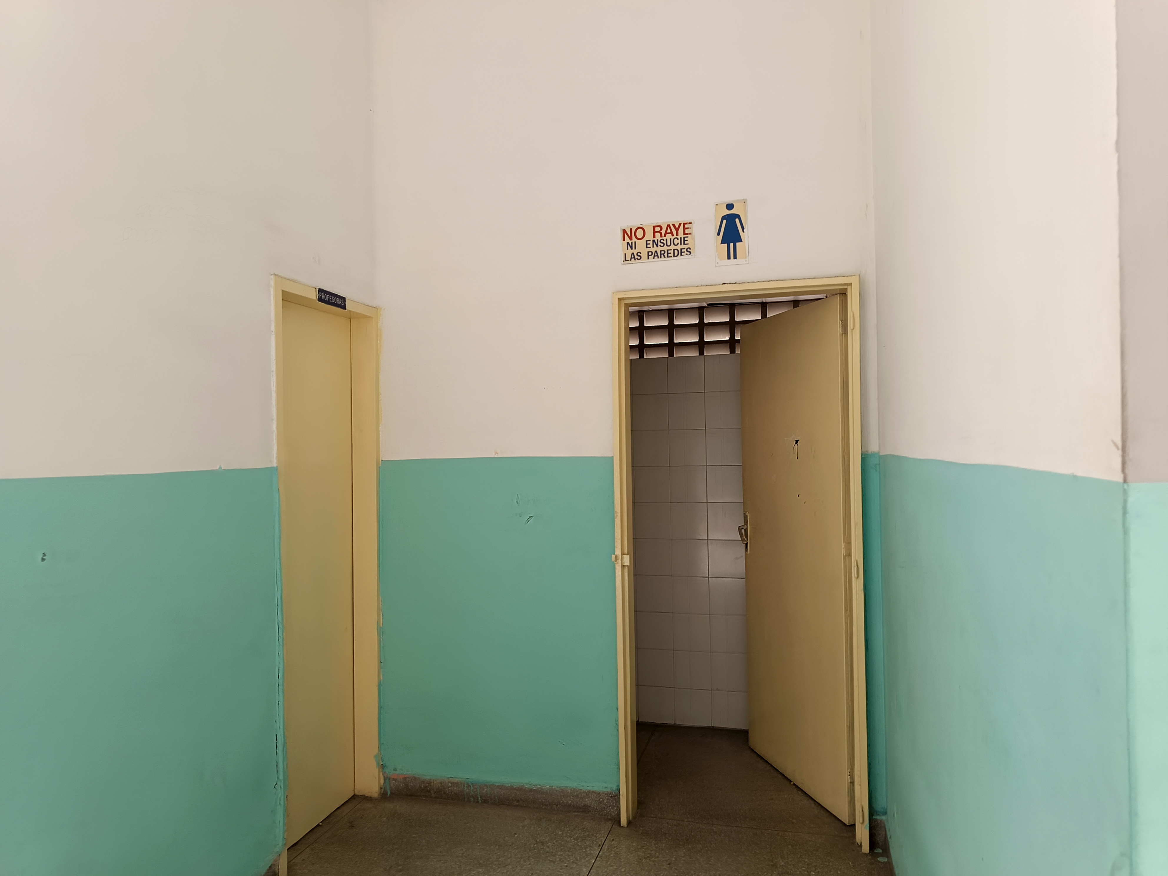 Por supuesto el liceo tiene baños, son 6 en total distribuidos en diferentes zonas de la institución, y todos identificados y separados (niños y niñas) y el de los profesores, personal administrativo y obrero.