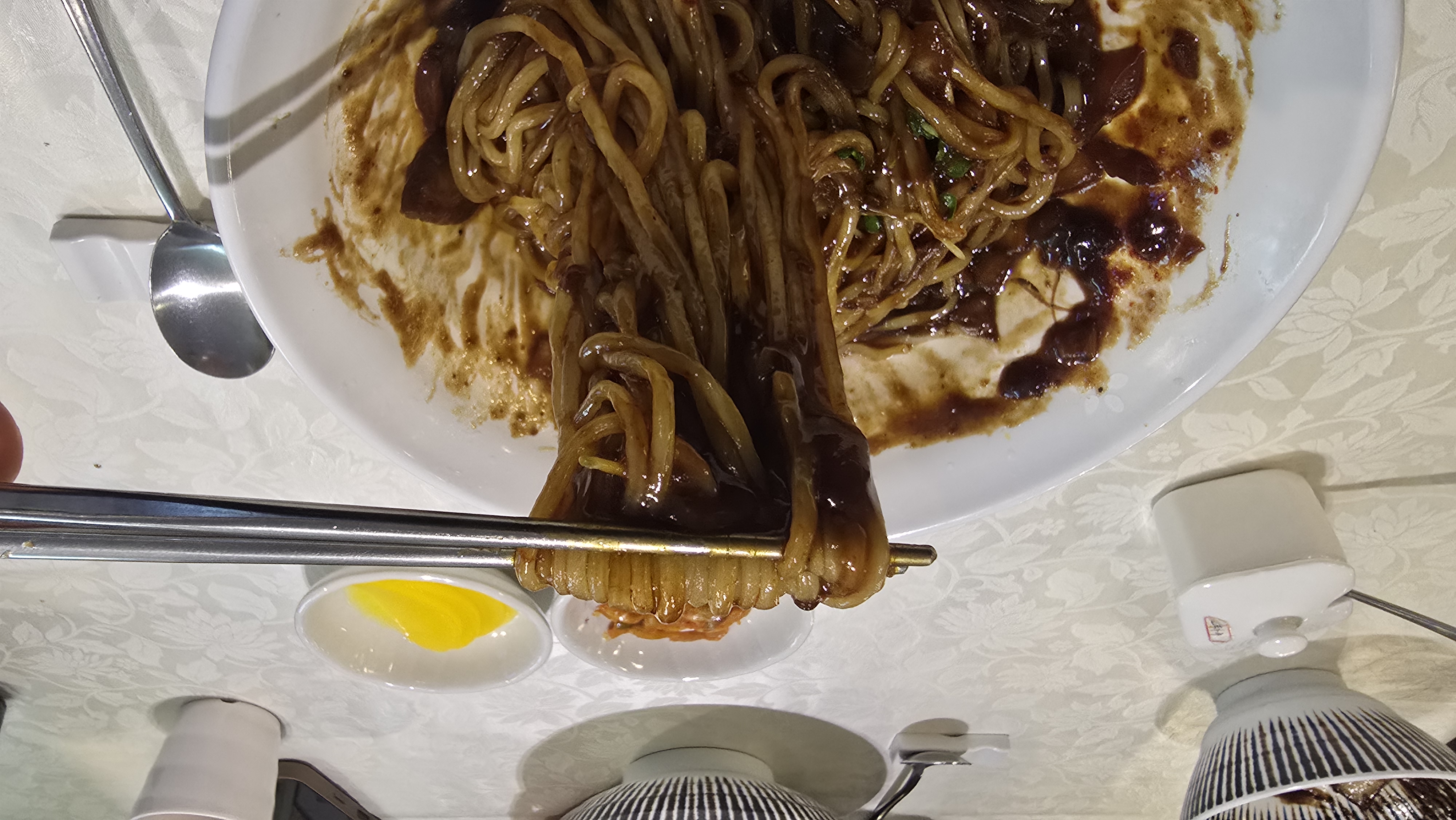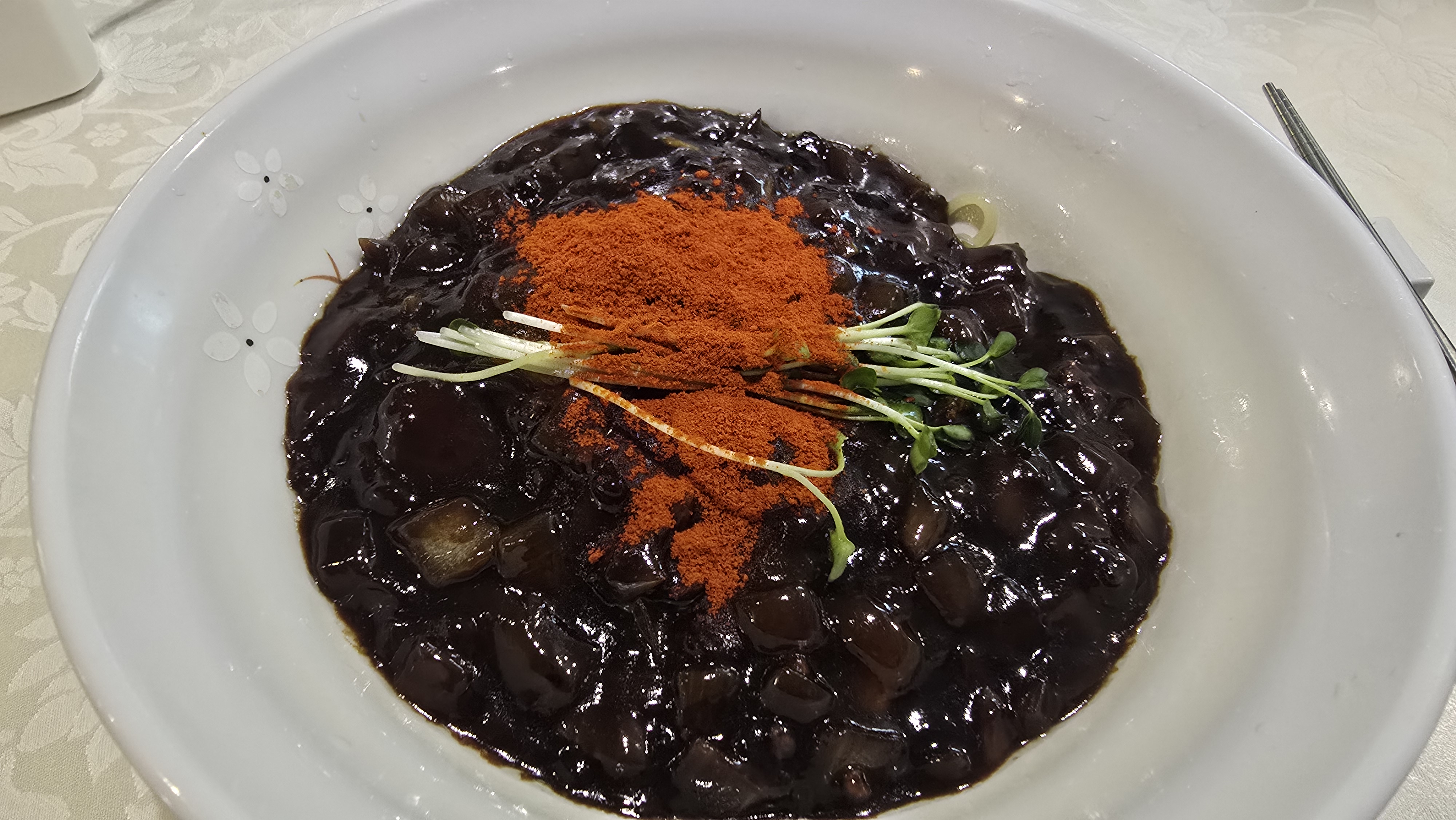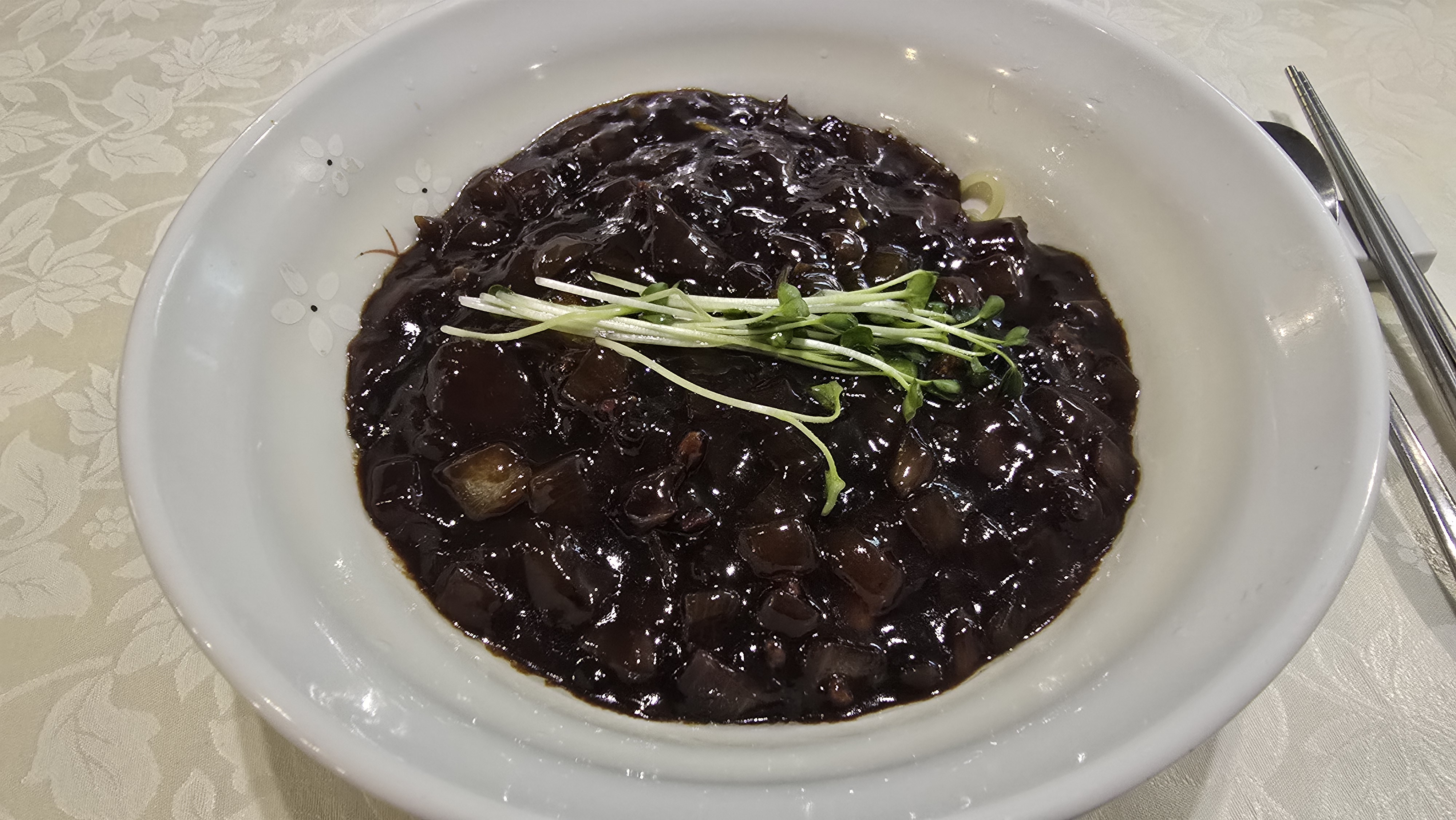 중식당은 다양한 메뉴가 있지만, 난 어릴적 국민학교 졸업식때 처음 먹어본 그 맛을 잊지 못하기 때문에 기본으로는 늘 짜장면이다. 어제는 배도 고파서 곱빼기로 주문했다.