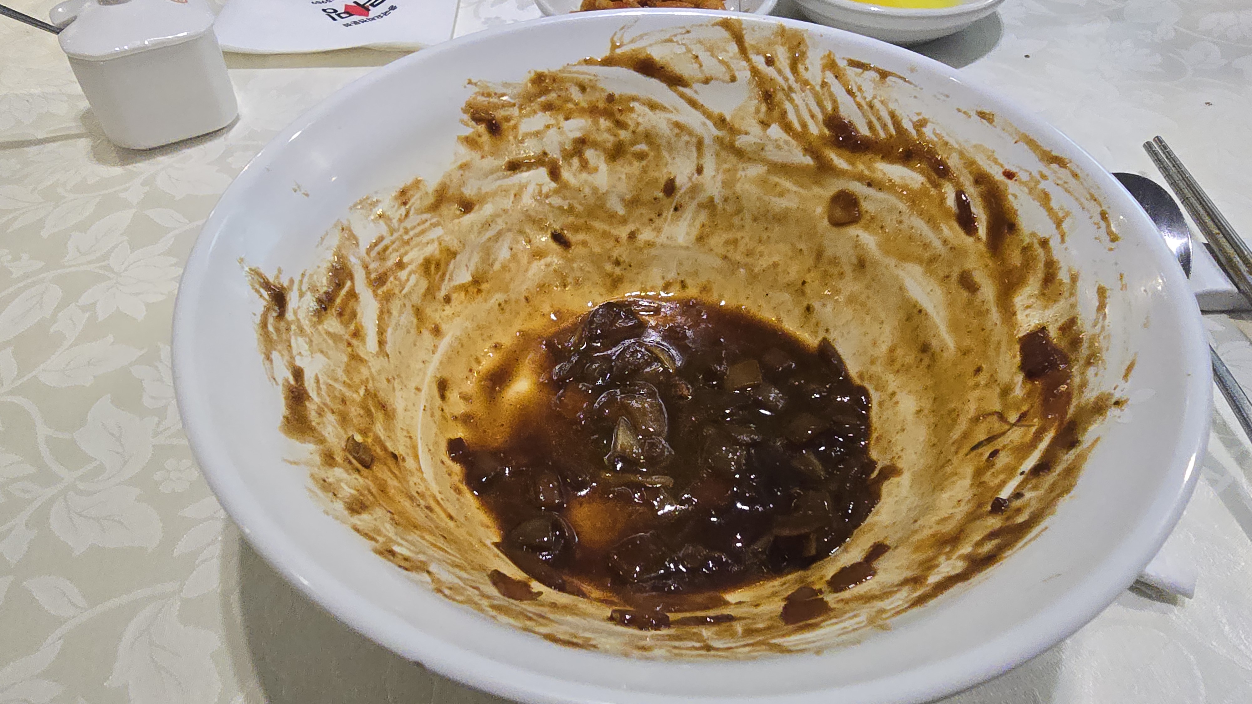 기다리던 짜장곱빼기가 왔다. 고춧가루를 듬뿍 넣어 야무지게 비벼주고, 젓가락으로 크게 들어서 한입 먹어준다. 입안 가득 차는 면과 짜장소스, 볶은양파가 절묘한 단짠의 밸런스를 맞춰 맛이 정말 끝내줬다. 멈추지 않고 논스톱으로 그릇 바닥이 보일때까지 열심히 먹었다. 빈그릇을 보니 든든하고 뿌듯했다.