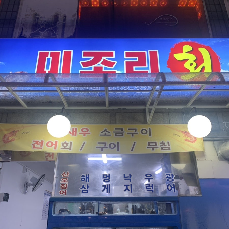 어제는 건설기술인협회 행사를 마치고 사촌형과 한잔 하기로 해서 안양으로 갔다. 사촌형네 집 바로 뒤에 위치한 "미조리회"라는 횟집에 갔다. 입구는 좁지만 내부가 ㄱ자로 넓었다.