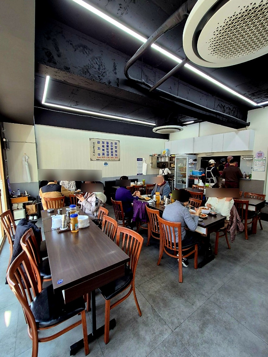 식당 내부는 생각보다 공간이 넓고 테이블 수도 많은 편이다. 외관만 보면 동네 작은 식당처럼 보일 수 있는데, 실제로 들어가 보면 여러 팀이 동시에 식사할 수 있는 구조다. 테이블 간 간격이 비교적 여유있고, 단체 손님도 가능한 좌석 구성이다. 점심시간 식사나 가족 모임에도 크게 불편함이 없을 정도로 자리 수가 넉넉한 편이다.