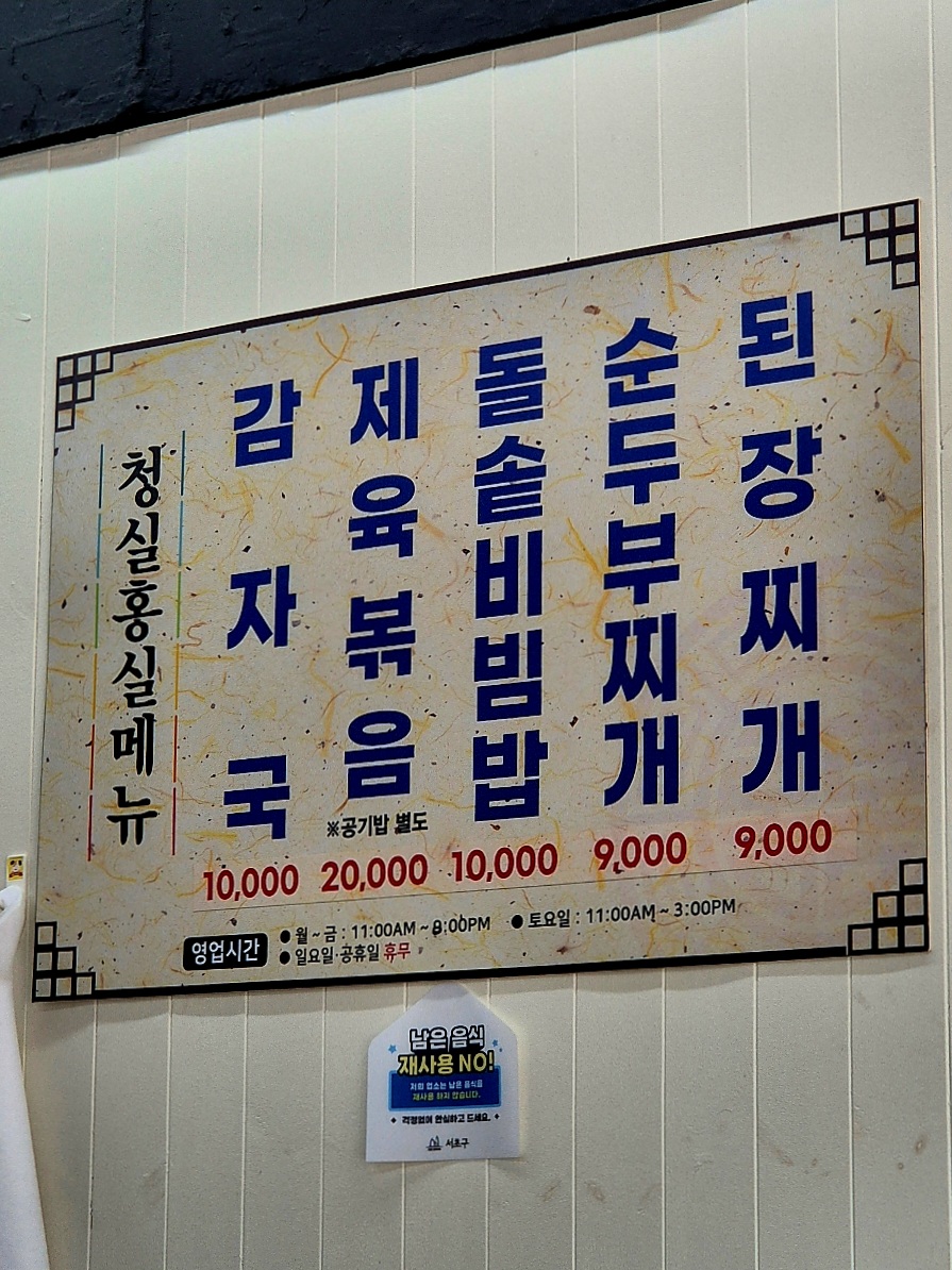 서초구 반포동 서래마을에는 오래된 동네 맛집들이 꽤 많다. 그중에서도 감자탕과 감자국으로 꾸준히 사랑받는 식당이 바로 청실홍실이다. 조용한 서래마을 골목에 자리 잡고 있지만 간판이 비교적 눈에 잘 들어온다. 요즘 감성 카페처럼 화려한 스타일은 아니지만, 동네에서 오래 운영된 식당 특유의 안정적인 분위기가 느껴지는 간판이다.