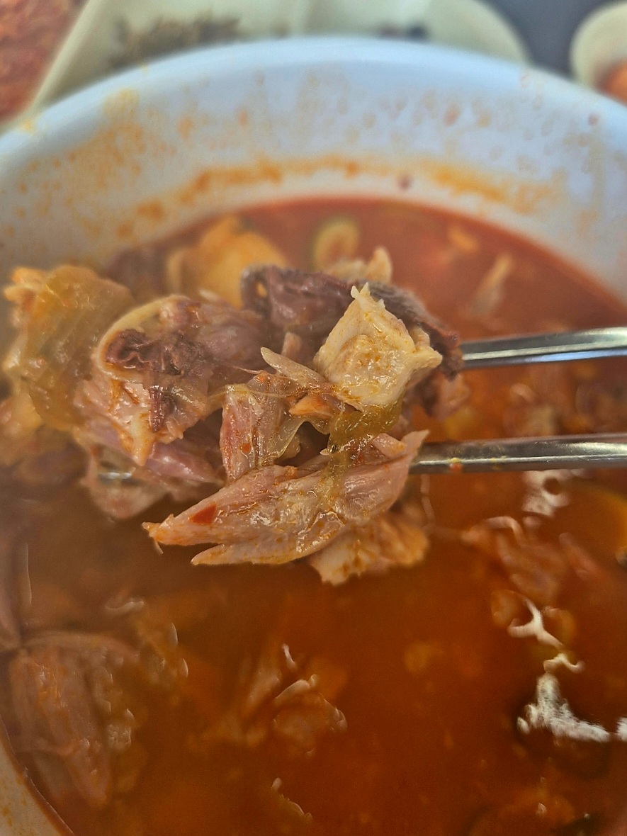 이 집에서 가장 인상적인 메뉴는 역시 감자국(감자탕)이다. 국물 맛은 전반적으로 깔끔하고 과하게 자극적이지 않은 스타일이다. 국물 맛이 텁텁하지 않고 개운하며 오래 고아낸 느낌의 깊은 육수, 그리고 고기가 부드럽게 분리되는 식감이 좋다.