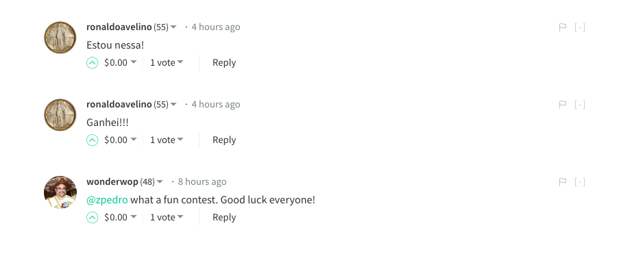 Whoa this time the contest was great! Lots of comments with lots of upvotes :) This is fun, a win-win situation. I did also cast some upvotes, mostly on people whose chances of winning were not great but didn't have much payout!