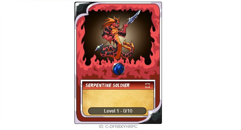 | Steem Monsters Level 1 RARE Serpentine Soldier Auction by @gregory-f Auction closed at 2018-08-21 16:22:12 GMT - Winning Bid of 0.040 SBD by @planosdeunacasa | |