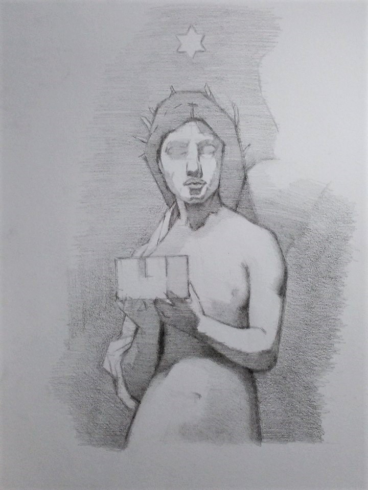 | Steembay Auction ~ Mastercopy block in drawing (after Lefebvre's "Pandora") created by @jameszenartist (James Hansen). by @jameszenartist