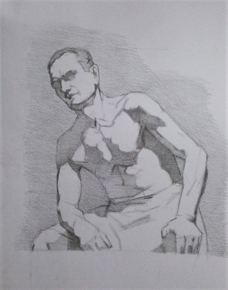 | Steembay Auction ~ Original Oil Painting ("Self Portrait in Grisaille-2017") created by @jameszenartist (James Hansen). by @jameszenartist
