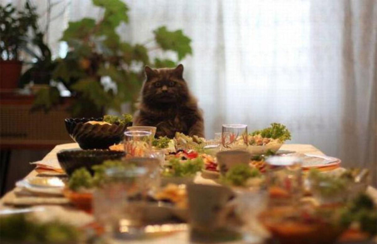 Котик за столом сидит,