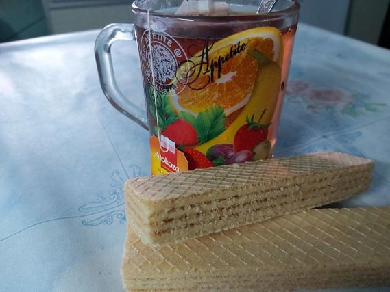 Настало время завтрака и я решил перекусить чайком с вафельками.