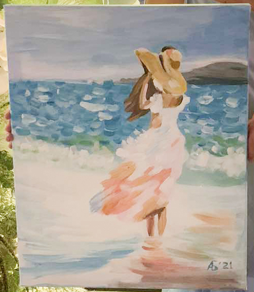 Я уже давно зову дочку на занятия живописью, но целых полгода она не решалась, мотивируя свой отказ тем, что у неё совсем нет опыта работы с акриловыми красками на холсте.