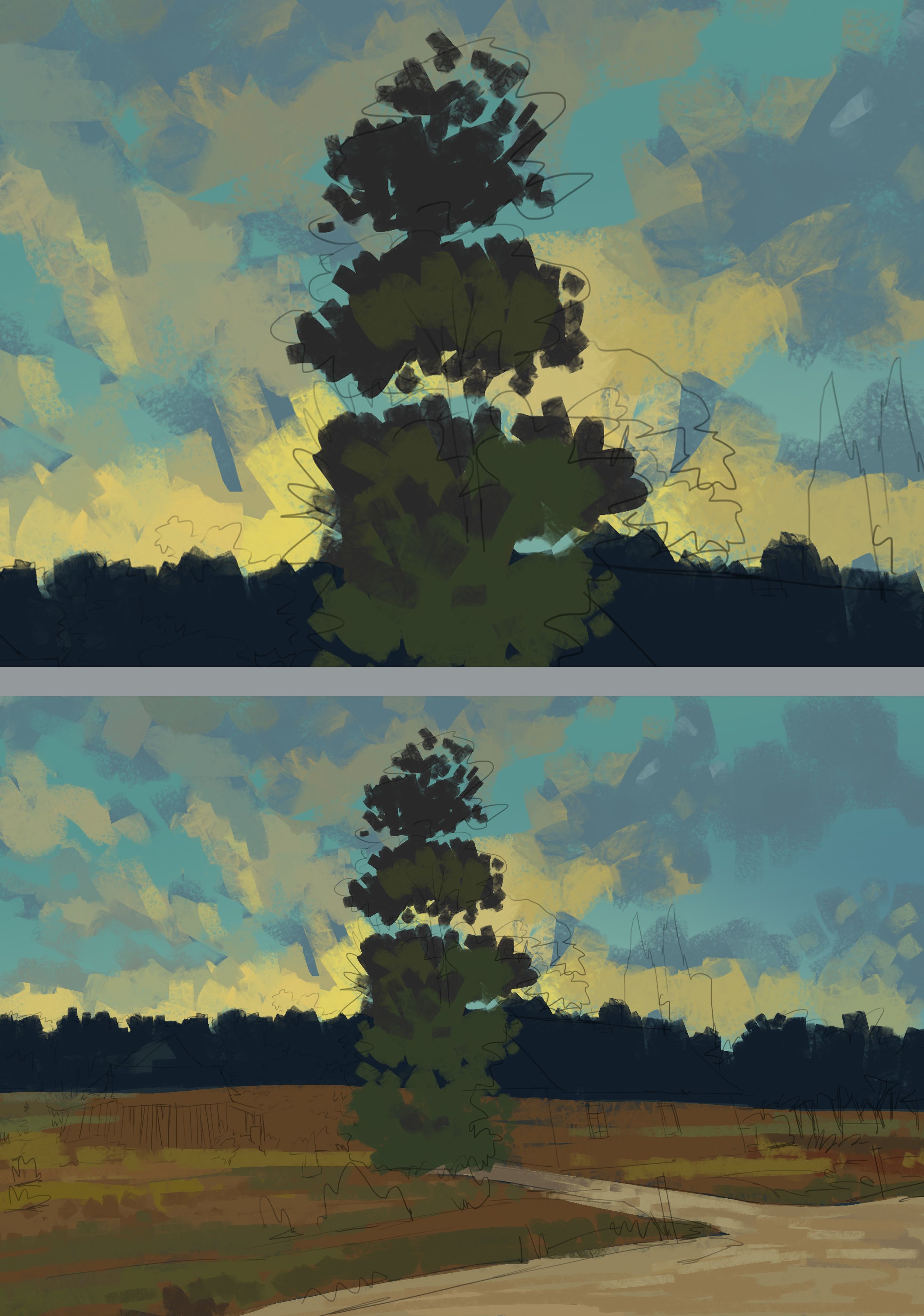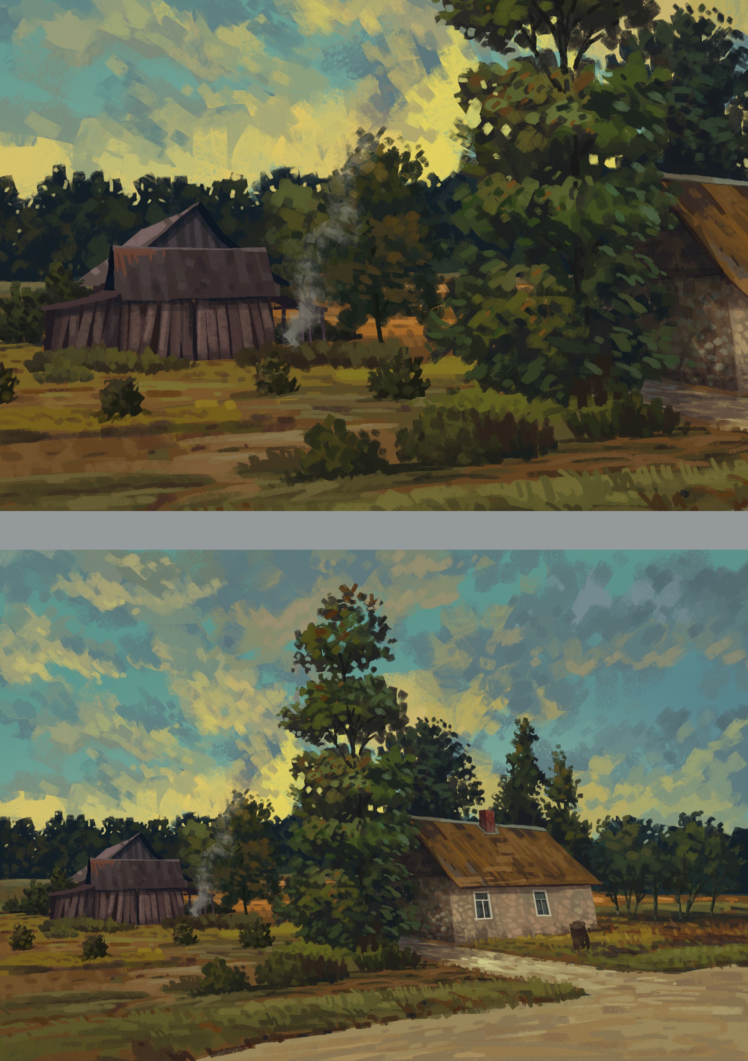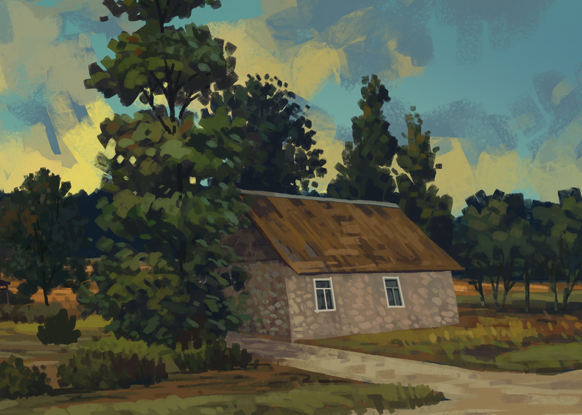 The detailing process on the house that I just included is to incorporate texture on each object. The spread of brush has to be spontaneous to get the effect of a brush.