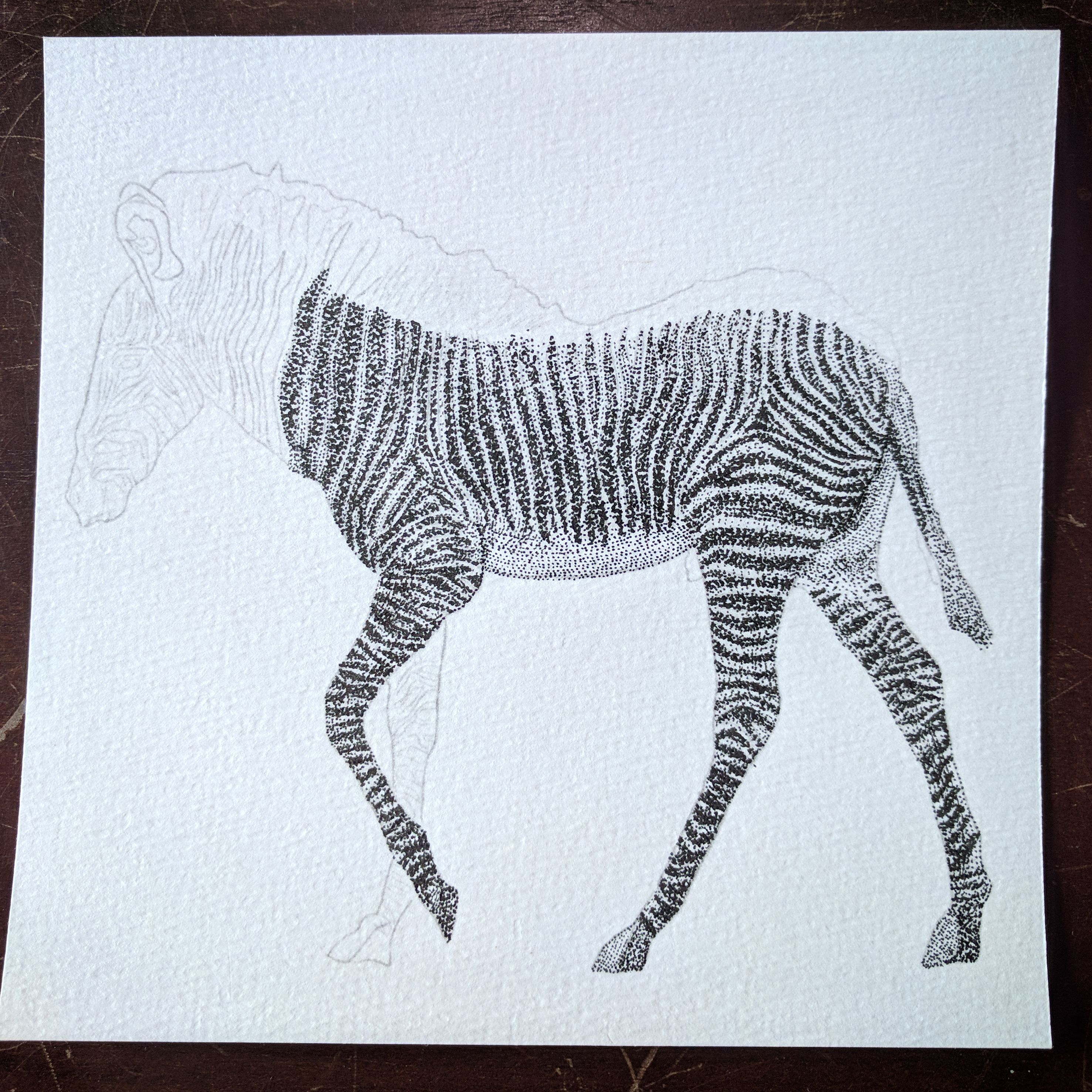 Another new drawing is up! This time, I have drawn something a little challenging. It is not about light and shadow only, but understand the anatomy of living things, Zebra. Every single dots is based on each muscle a zebra have from my anatomy study.