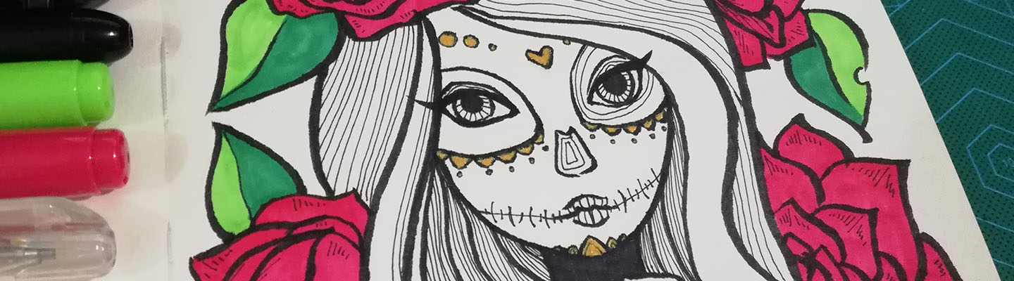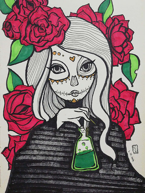 I don't know if its obvious or not but my main inspiration for this drawing is non other than Miss Poison Ivy (from Batman) herself. At first I wanted to draw a girl holding a skull but then it turned in a girl wearing a skull face paint which in my opinion is waaaaayyyy better.