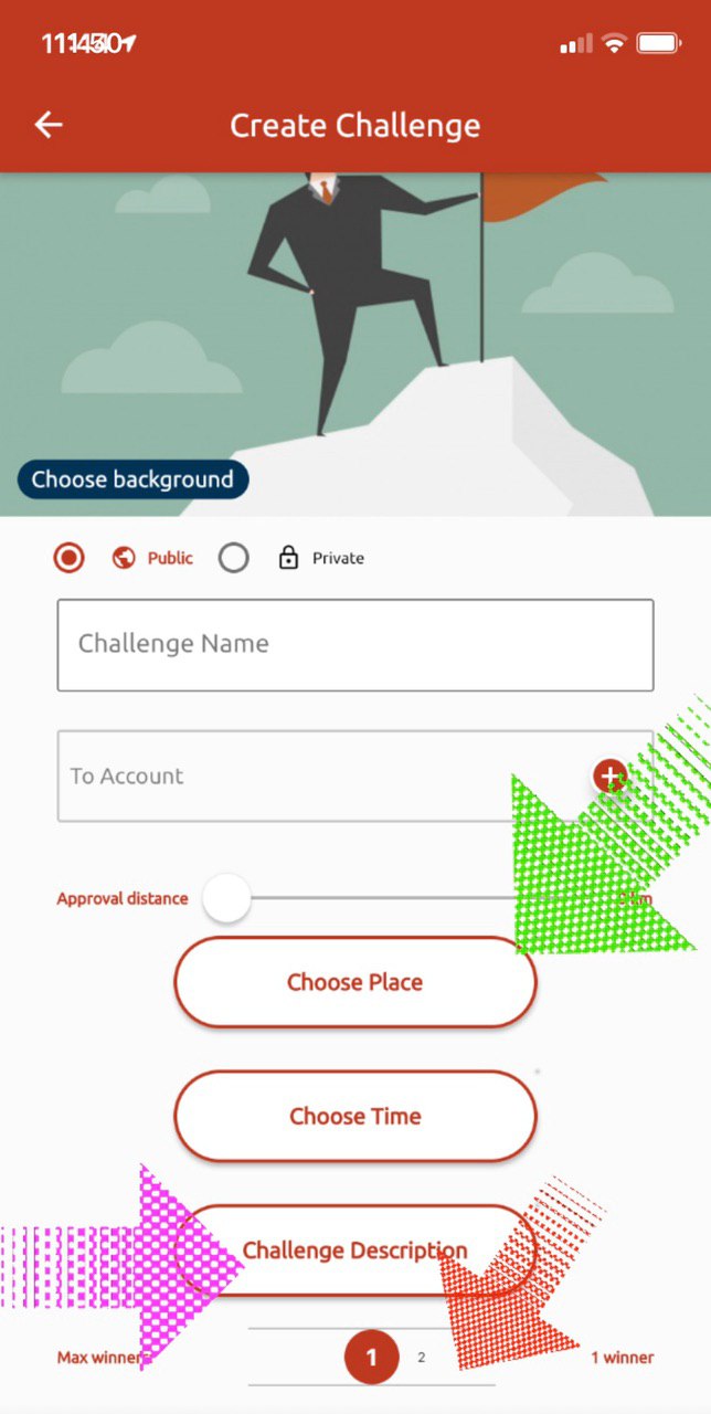 In past versions to create a Challenge, users had to enter a Challenge description, Challenge deadline, Challenge Address, and the Challenge win zone was limited to within a few meters of the address that was selected. Also, the token prize had to be entered along with the max number of winners.