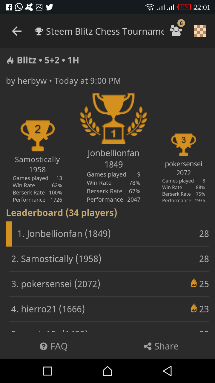 I finished 1st for the first time in steem chess weekly blitz and this made happy beyond magnitude because it was about the first time that am actually getting to the top 4