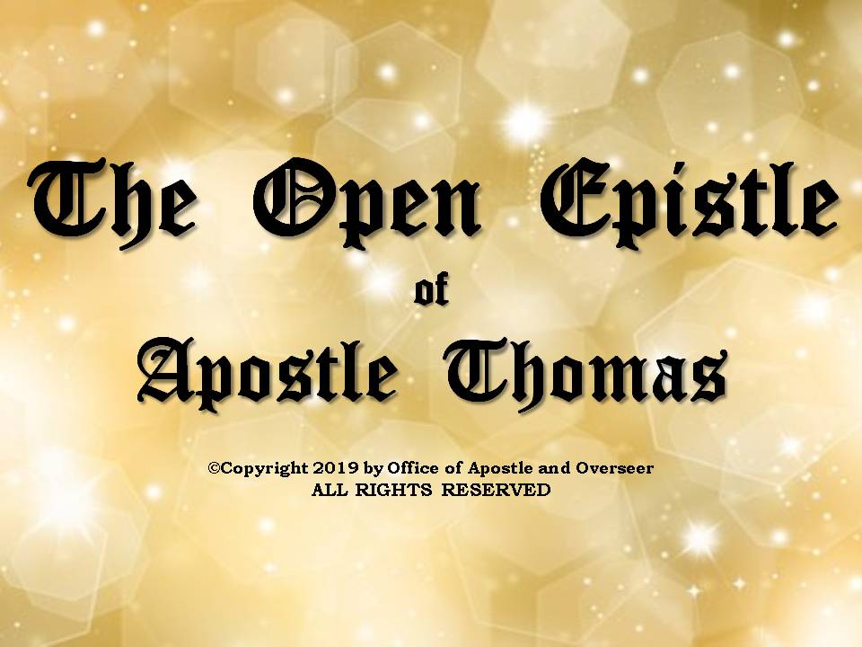 Grace, peace, and love be unto the apostles with the elders in the presbytery of LORD JESUS CHRIST MINISTRIES, whom the Holy Ghost made overseers of the saints added to THE CHURCH OF GOD IN THE LORD JESUS CHRIST. We are with the elect gathered from the four winds of heaven as THE CHURCH OF THE FIRSTBORN IN LORD JESUS CHRIST, who are the children of the resurrection. Joined with the saints, Lord Jesus Christ brought with him as THE CHURCH OF THE LIVING GOD LORD JESUS CHRIST, who was sleeping in white robes under the altar until the first resurrection. Now, we are a great multitude in His victorious army terrible with three banners and an innumerable company of angels.