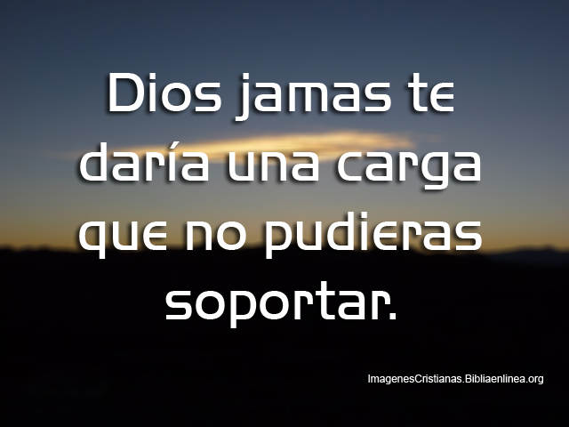 Una frase mis queridos amigos que no necesita mucha explicación, que tan grande puede ser la carga, hasta donde donde la podemos soportar, el señor nos coloca pruebas en nuestro camino , en nuestro transitar pero aquella que podemos soportar, sobrellevar pero nunca a punto que no logremos superarla.