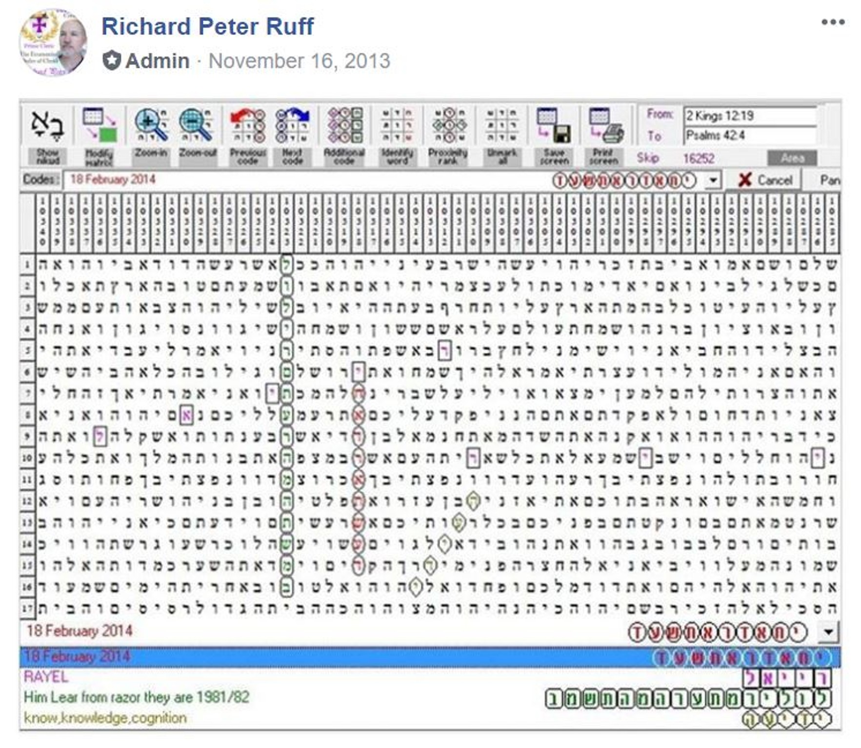 With the following Bible Code published well in advance, it brought much speculation to what it could mean, published on the 16th Nov 2013 for the date of February 2014.