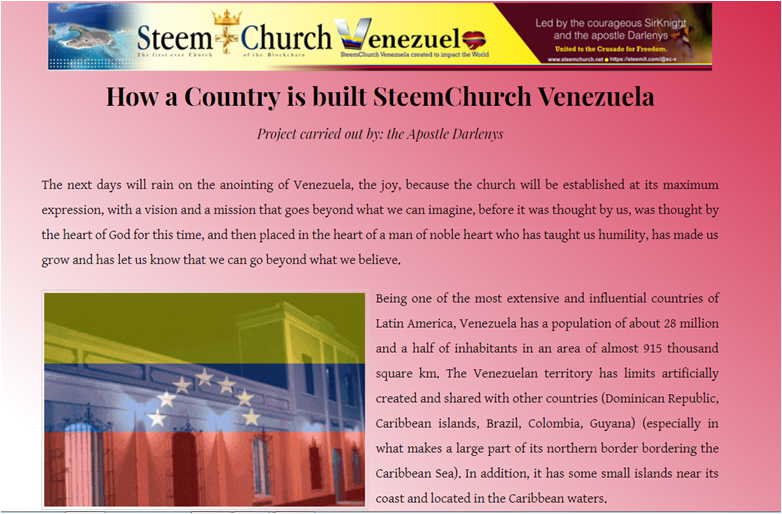 thanks @steemchurch for the creation of this page and the support for this project to materialize. My beautiful and beautiful country Venezuela blessed by God, we welcome you.