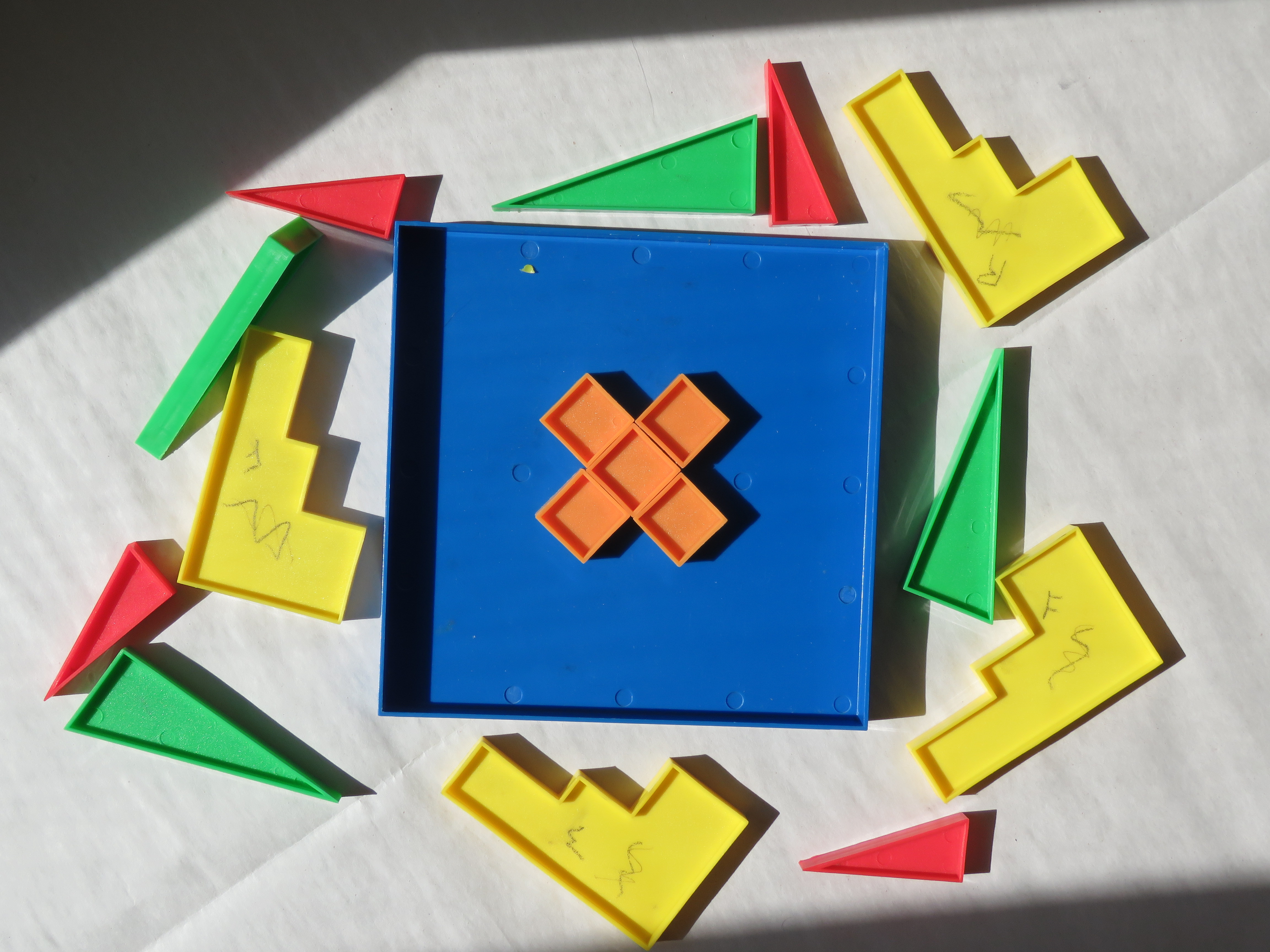 a challenge to assemble in two different ways, different number of pieces, both apparently complete. Gifts purchased and wrapped, I studied and rehearsed an extra puzzle in order to be able to show the group the solution. Working both ways, forward and back, over and over, with only a goal of memorizing the parts placement, a picture of an individual with a central piece missing came to my mind.