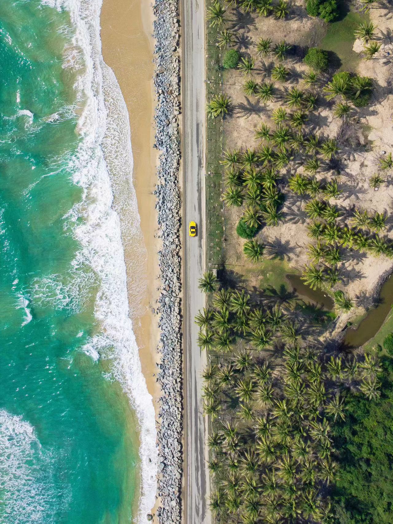 海南小众旅行地,一半椰林一半大海的海滨公路,日落时分橘子海中的红色灯塔像极了小说里才会出现的场景