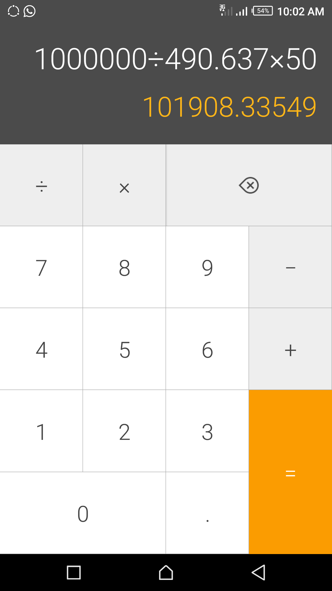 (1,000,000 / 490.637) * 50 = 101908.335490