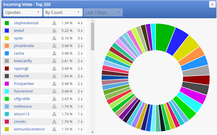 WOW! Great work so far. I admire how many votes you were able to distribute. I will try using the patterns you follow as far as voting and see if I can get get more per day.