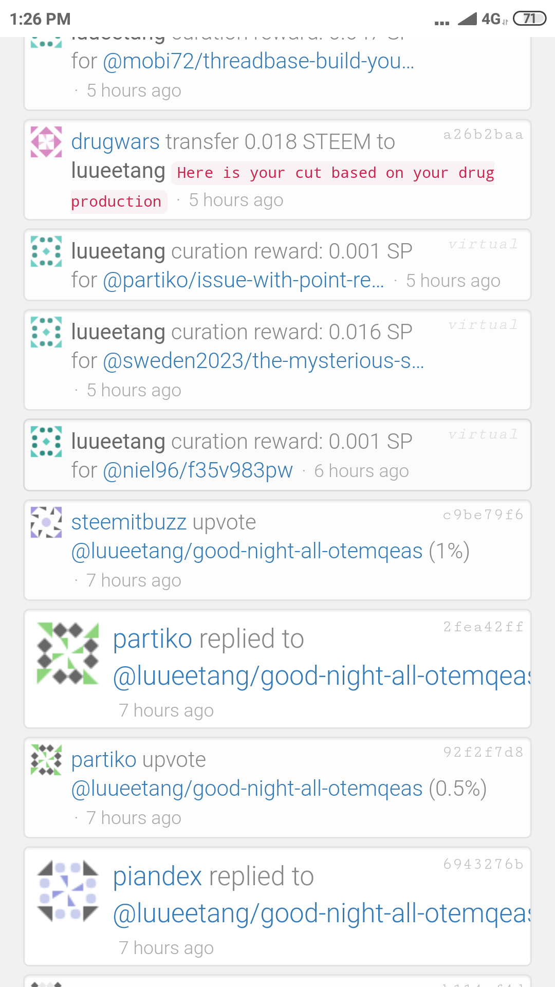 As you can see, this is all the activities that I've done so far at the current moment of time. Drug wars gave me some Steem. I haven't really fully explored the full potential of this yet but I am sure it has something great for all of us to gain.
