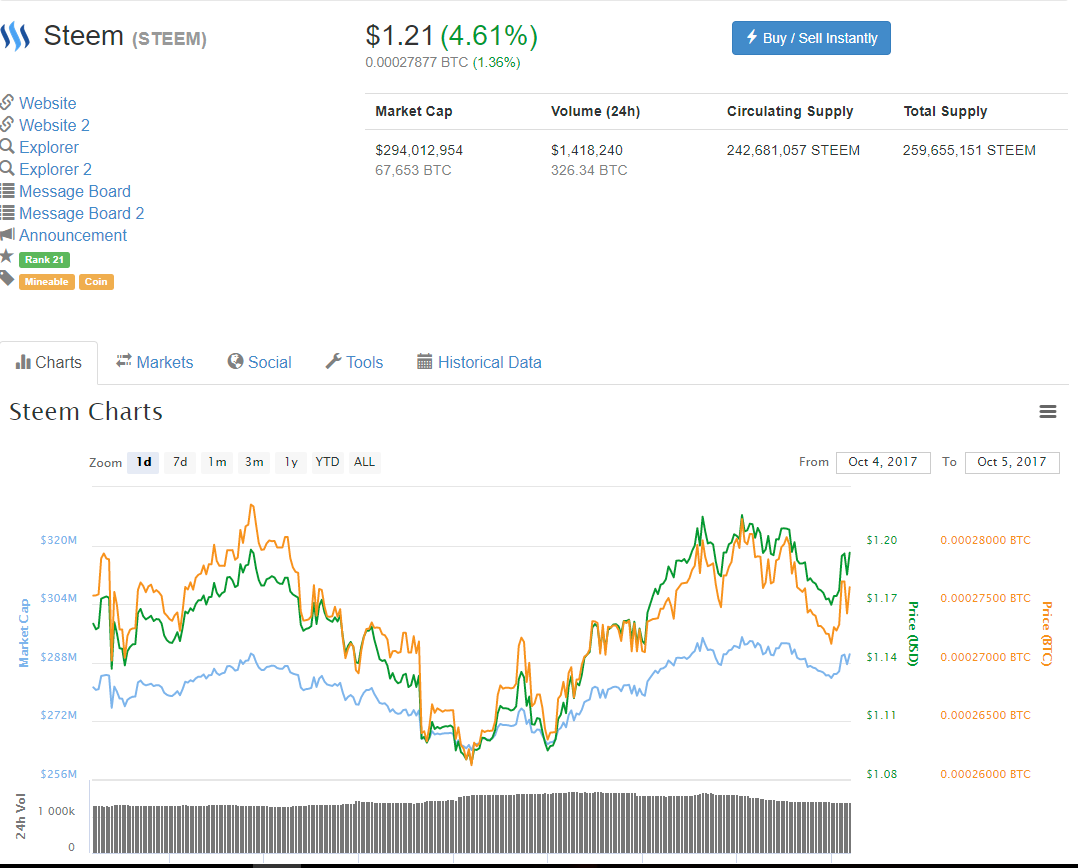 Daily Steem and Steem Dollars SBD Price Report 20171005