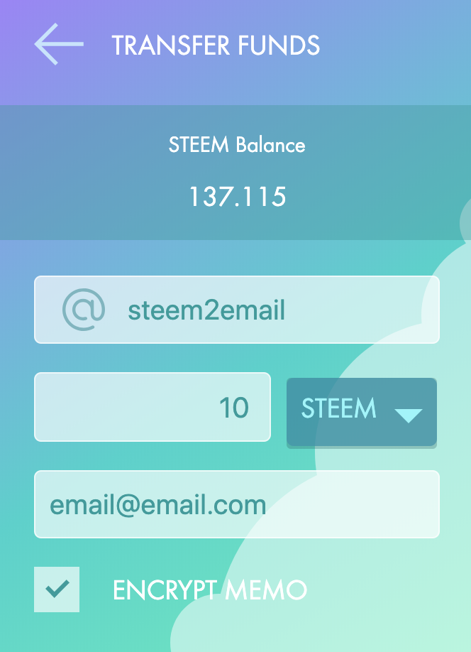 - You need to register an email address. To do this, send any amount of STEEM (as a donation) to @steem2email with an email address in the memo.