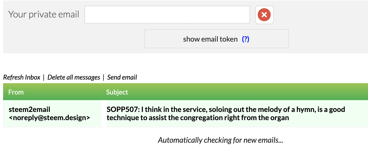 - Check https://steempeak.com/@steem2email/transfers to ensure @steem2email received the funds and the memo.